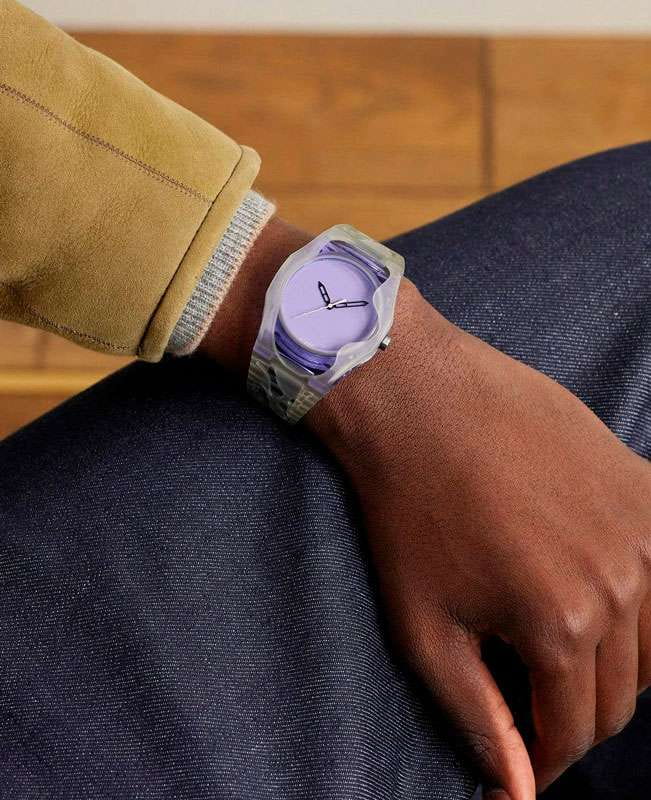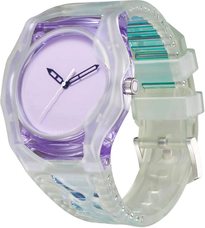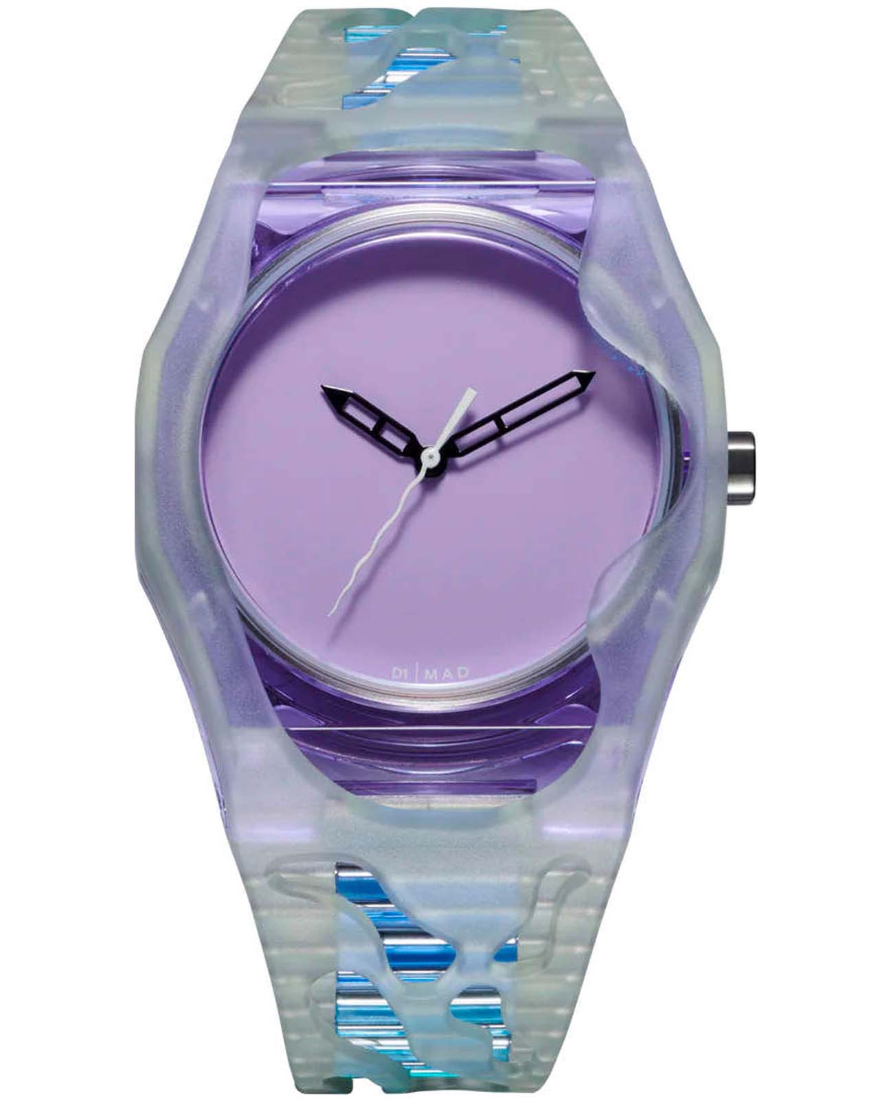 Мужские часы D1 Milano MAD Paris x D1 MDRJ03 - уникальный аксессуар. Milano и MAD Paris представили ограниченную серию часов из шести необычных моделей, характеризующуюся яркой цветовой гаммой и монохромной эстетикой. Часы Freezer имеют корпус из прозрачного нейлона, покрытого матовым полупрозрачным полиуретаном. Матовый циферблат без меток и стрелки в стиле Skeleton. Циферблат защищен минеральным стекломМинеральное стеклоМинеральное стекло представляет собой искусственно выращенный минерал кварца. Такое стекло отличается особой устойчивостью к повреждениям и царапинам. Уступает по некоторым качествам сапфировому стеклу., устойчивым к царапинам. Секундная стрелка имеет оригинальную волнообразную форму. Задняя крышка стальная, крепится на 4 винтах, каждый экземпляр имеет индивидуальный серийный номер. Ремешок оснащен классической застежкой.