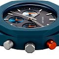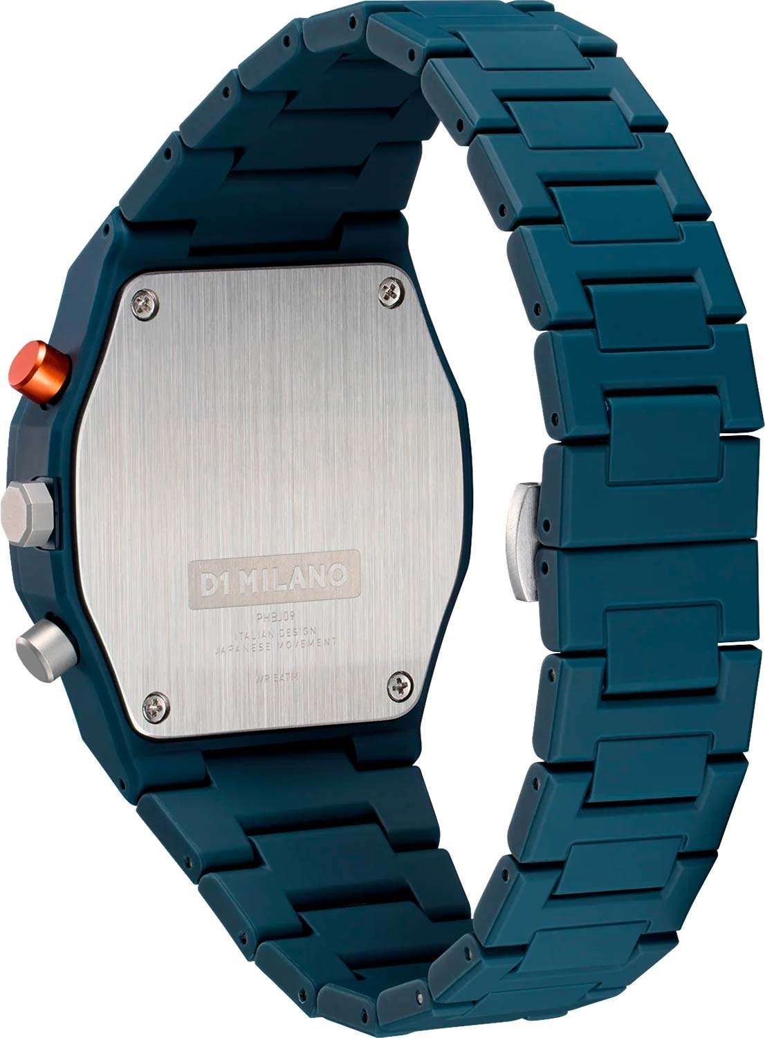 Часы D1 Milano PHBJ09 — это элегантные кварцевые часы, которые впечатляют своим функциональным дизайном, подходят как для мужчин, так и для женщин. Их высокая надежность превращает эти часы в незаменимый аксессуар на каждый день. ХронографХронографФункция позволяет измерять отрезки времени с особой точностью: часы, минуты, секунды. Верным признаком хронографа является наличие на циферблате 3 дополнительных окошек-счётчиков. оснащен секундомеромСекундомерСекундоме́р — прибор, способный измерять интервалы времени с точностью до долей секунды. и синим циферблатом, защищенным минеральным стекломМинеральное стеклоМинеральное стекло представляет собой искусственно выращенный минерал кварца. Такое стекло отличается особой устойчивостью к повреждениям и царапинам. Уступает по некоторым качествам сапфировому стеклу.. На циферблате расположены накладные метки в виде штрихов и три дополнительных циферблата с оранжевыми стрелками, а также окошко календаря в районе отметки «4:30». Пластиковый синий безельБезельВнешний ободок, закрепляющий стекло. В спортивных часах так называется поворотное кольцо с делениями на циферблате, выполняет роль таймера – замеряет отрезки времени на шкале. Неподвижный безель – элемент декора. Однонаправленно вращающийся безель на дайверских часах позволяет фиксировать моменты погружения и выныривания на поверхность. отлично сочетается с таким же пластиковым браслетом, застежкой «бабочка»Застёжка "бабочка"Такой вид застёжки дополняется предохранителями, помогающими избежать случайного раскрытия браслета. Обладают изящным исполнением. . Стальная задняя крышка этих часов крепится на 4-х винтах. Водонепроницаемость до 50 метров делает эти часы идеальным выбором для повседневного использования.