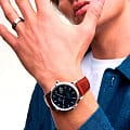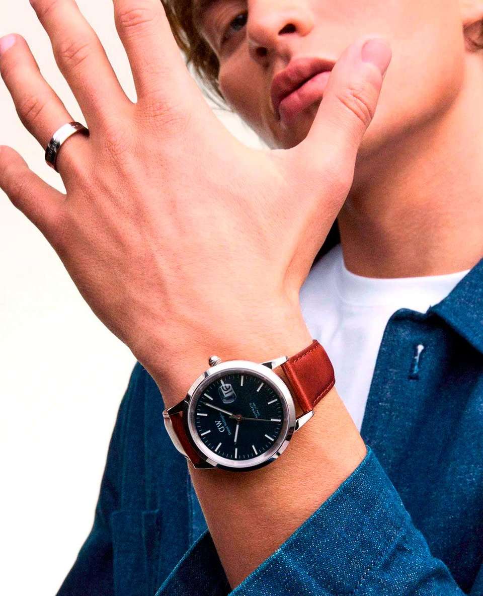 Мужские наручные часы Daniel Wellington DW00100755 из коллекции Iconic Automatic сочетают в себе элегантный дизайн и современные технологии . Модель обладает круглым корпусом диаметром 40 мм, выполненным из высококачественной нержавеющей стали, что обеспечивает надежность и устойчивость к внешним воздействиям . Толщина корпуса составляет 9,5 мм, а циферблат защищен сапфировым стекломСапфировое стеклоПрочный и надёжный материал из кристалла сапфира синтетического происхождения, характеризующийся особой твёрдостью и устойчивостью к царапинам и повреждениям., устойчивым к царапинам и механическим повреждениям. Циферблат синего цвета оснащен окном даты с увеличительной линзой для удобства считывания информации . Часы работают на японском автоматическом механизме, который поддерживается движением запястья, обеспечивая точность хода без необходимости использования батарейки . Ремешок выполнен из коричневой кожи на стандартной застежке, что добавляет модели элегантности и делает ее подходящей как для повседневного использования, так и для официальных мероприятий. Корпус часов оснащен прозрачной задней крышкой, позволяющей наблюдать за работой механизма, а также винтовой коронкой, обеспечивающей водонепроницаемость до 100 метров .