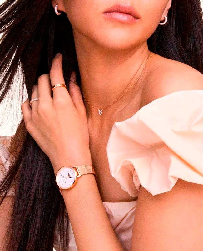 Женские наручные часы Daniel Wellington Petite Lune Melrose DW00100773 представляют собой элегантный аксессуар с уникальным дизайном, сочетающим классические элементы и современные технологии . Модель обладает круглым корпусом диаметром 32 мм, выполненным из нержавеющей стали 316L с PVD-покрытиемPVDУльтратонкое покрытие наносится в технике вакуумного напыления, сочетает в себе нитрид титана особой прочности со слоем золота или оксида хрома. Несёт в себе декоративную или защитную функцию. розового золота, что обеспечивает высокую устойчивость к внешним воздействиям и придает изделию премиальный вид . Браслет выполнен из металлической сетки (milanese mesh) с раскладной застежкойРаскладная застёжкаТакой тип застёжки используется только на браслетах из металла. Она никогда не раскрывается полностью, происходит разделение на 2 и более частей. Раскладывающая застёжка снизит вероятность потери часов к минимуму., гарантирующей комфортное ношение . Циферблат белого цвета дополнен уникальным индикатором фаз Луны, который отслеживает положение Луны в течение месяца, меняясь от новолуния до полнолуния и обратно . Для защиты используется минеральное стеклоМинеральное стеклоМинеральное стекло представляет собой искусственно выращенный минерал кварца. Такое стекло отличается особой устойчивостью к повреждениям и царапинам. Уступает по некоторым качествам сапфировому стеклу., устойчивое к царапинам и механическим повреждениям . Часы работают на японском кварцевом механизме, обеспечивающем высокую точность хода . Водонепроницаемость модели составляет 30 метров / 3 ATM, что позволяет использовать их в повседневных условиях, например, при мытье рук или в дождь, но не рекомендуется для плавания . Тонкий корпус часов (всего 6 мм) делает их идеальным выбором для сочетания с повседневной одеждой и даже с более формальными нарядами . Простота и изысканность дизайна делают эту модель универсальным аксессуаром для женщин, ценящих стиль и функциональность .