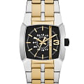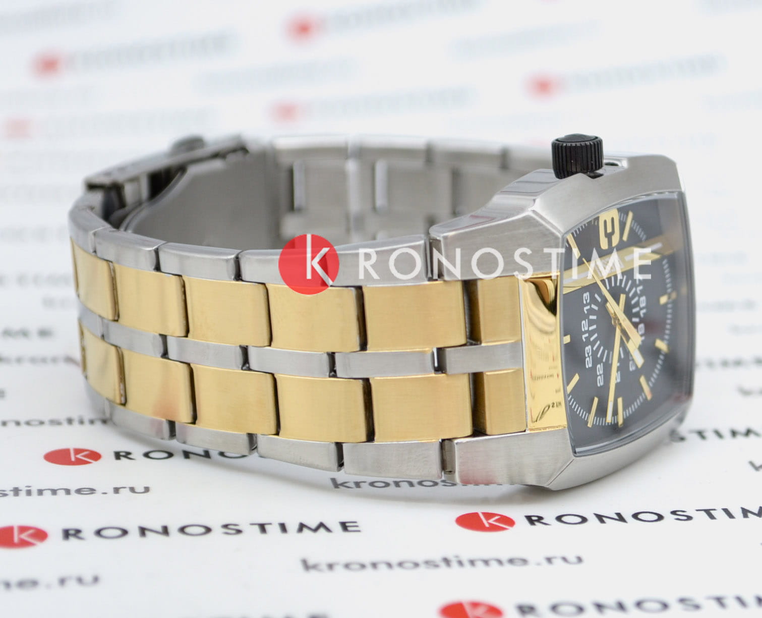 Diesel Cliffhanger DZ2169 – стильные мужские часы, сочетающие современный дизайн и высокую функциональность. Корпус размером 36 мм выполнен из нержавеющей стали с двухцветным браслетом, придающим модели элегантный вид. Чёрный сатинированный циферблат оснащён стрелками и метками, обеспечивающими отличную читаемость, и защищён минеральным стекломМинеральное стеклоМинеральное стекло представляет собой искусственно выращенный минерал кварца. Такое стекло отличается особой устойчивостью к повреждениям и царапинам. Уступает по некоторым качествам сапфировому стеклу., устойчивым к внешним воздействиям.