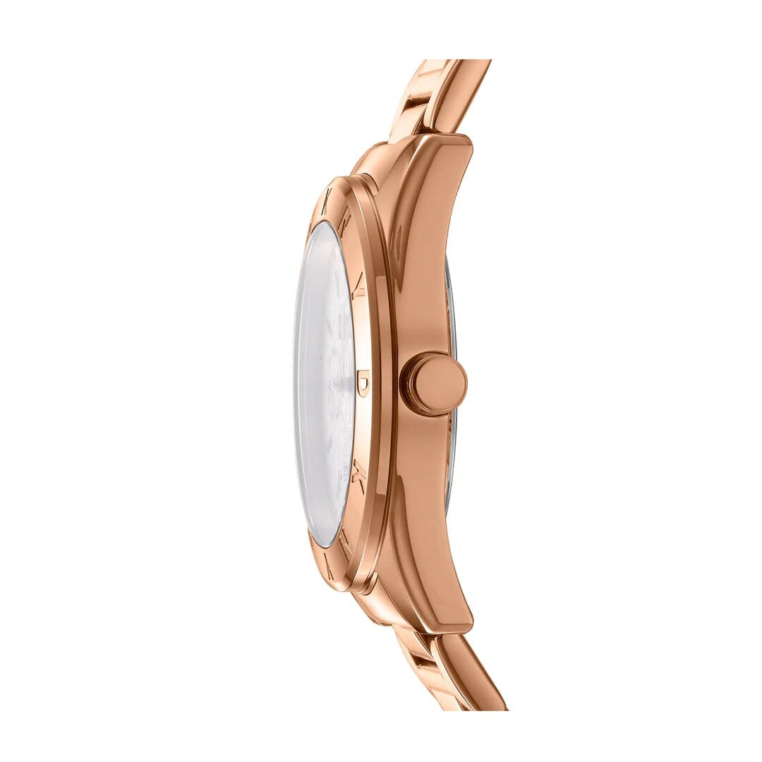 Женские наручные часы DKNY DK1L015M0045 – модель сочетает в себе элегантный дизайн и спортивный дух, что делает ее идеальным аксессуаром для современных активных женщин. Корпус из нержавеющей стали диаметром 36 мм и минеральное стеклоМинеральное стеклоМинеральное стекло представляет собой искусственно выращенный минерал кварца. Такое стекло отличается особой устойчивостью к повреждениям и царапинам. Уступает по некоторым качествам сапфировому стеклу. обеспечивает защиту от царапин, а водонепроницаемость до 50 метров делает модель практичной для активного отдыха или повседневной носки. Браслет из нержавеющей стали с IP-покрытиемIP-покрытиеМетод ионного напыления. Демонстрирует повышенную устойчивость к истиранию, окислению и химическим веществам. Под воздействием высокого давления и температуры около 1500°C молекулы металла надёжно соединяются с частицами корпуса часов. на раскладной застёжкеРаскладная застёжкаТакой тип застёжки используется только на браслетах из металла. Она никогда не раскрывается полностью, происходит разделение на 2 и более частей. Раскладывающая застёжка снизит вероятность потери часов к минимуму. надежно фиксирует часы на руке. DKNY Chambers Multi Sport – идеально подойдут для девушек, ценящих утонченность и функциональность в аксессуарах, станут прекрасным дополнением к любому образу, от повседневного до вечернего.