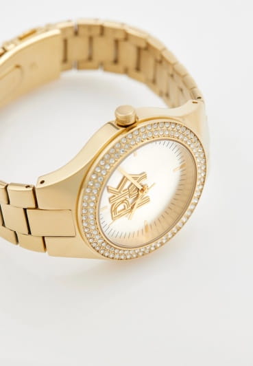 DKNY Parsons Glitz DK1L025M0045 воплощают в себе шик и изысканность. Корпус из нержавеющей стали диаметром 38 мм и минеральное стеклоМинеральное стеклоМинеральное стекло представляет собой искусственно выращенный минерал кварца. Такое стекло отличается особой устойчивостью к повреждениям и царапинам. Уступает по некоторым качествам сапфировому стеклу. обеспечивает защиту от царапин, а водонепроницаемость до 50 метров делает модель практичной для активного отдыха или повседневной носки. Браслет из нержавеющей стали с IP-покрытиемIP-покрытиеМетод ионного напыления. Демонстрирует повышенную устойчивость к истиранию, окислению и химическим веществам. Под воздействием высокого давления и температуры около 1500°C молекулы металла надёжно соединяются с частицами корпуса часов. на раскладной застёжкеРаскладная застёжкаТакой тип застёжки используется только на браслетах из металла. Она никогда не раскрывается полностью, происходит разделение на 2 и более частей. Раскладывающая застёжка снизит вероятность потери часов к минимуму. надежно фиксирует часы на руке и подчёркивает женственность дизайна. БезельБезельВнешний ободок, закрепляющий стекло. В спортивных часах так называется поворотное кольцо с делениями на циферблате, выполняет роль таймера – замеряет отрезки времени на шкале. Неподвижный безель – элемент декора. Однонаправленно вращающийся безель на дайверских часах позволяет фиксировать моменты погружения и выныривания на поверхность. инкрустирован кристаллами. Эта модель станет идеальным дополнением вашего гардероба, подчеркнув индивидуальный стиль.
