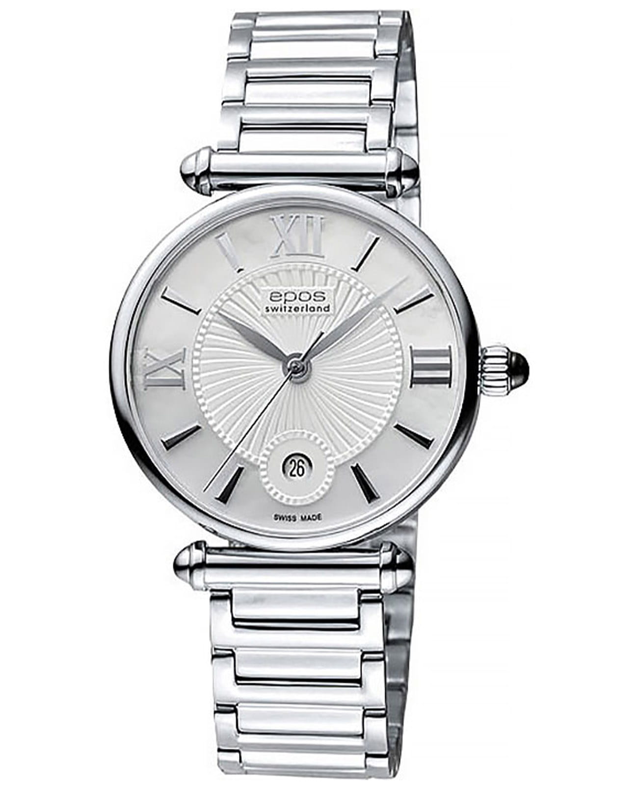 Женские швейцарские кварцевые часы Epos Quartz 8000.700.20.68.30, кварцевый механизм с высокой точностью. Сапфировое стеклоСапфировое стеклоПрочный и надёжный материал из кристалла сапфира синтетического происхождения, характеризующийся особой твёрдостью и устойчивостью к царапинам и повреждениям. устойчивое к появлению царапин, обладающее высокой прозрачностью. Класс водозащиты: 30 метров, позволит защитить корпус от случайных брызг или капель дождя. Корпус часов изготовлен из стали. Браслет с Застёжка "бабочка"Застёжка "бабочка"Такой вид застёжки дополняется предохранителями, помогающими избежать случайного раскрытия браслета. Обладают изящным исполнением. . Заводная головка украшена сапфиром в форме кабошона. Окошко даты находятся в положении 6 часов.