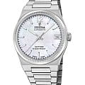 Женские наручные часы Festina F20029/1 с кварцевым механизмом с высокой точностью. Кварцевый механизм с высокой точностью. Сапфировое стеклоСапфировое стеклоПрочный и надёжный материал из кристалла сапфира синтетического происхождения, характеризующийся особой твёрдостью и устойчивостью к царапинам и повреждениям. устойчивое к появлению царапин, обладающее высокой прозрачностью. Класс водозащиты: 100 метров, позволит плавать, нырять и заниматься другими водными видами спорта. Корпус часов изготовлен из нержавеющей стали. Стальной браслет застёжке-бабочке. Стрелки и метки с люминесцентным покрытиемЛюминесцентное покрытиеПозволяет считывать показания времени в темноте. Производители наносят на стрелки, часовые индексы, безель или поверхность циферблата светонакопительный состав, дающий холодное свечение.. Окошко даты находится в положении 3 часа.