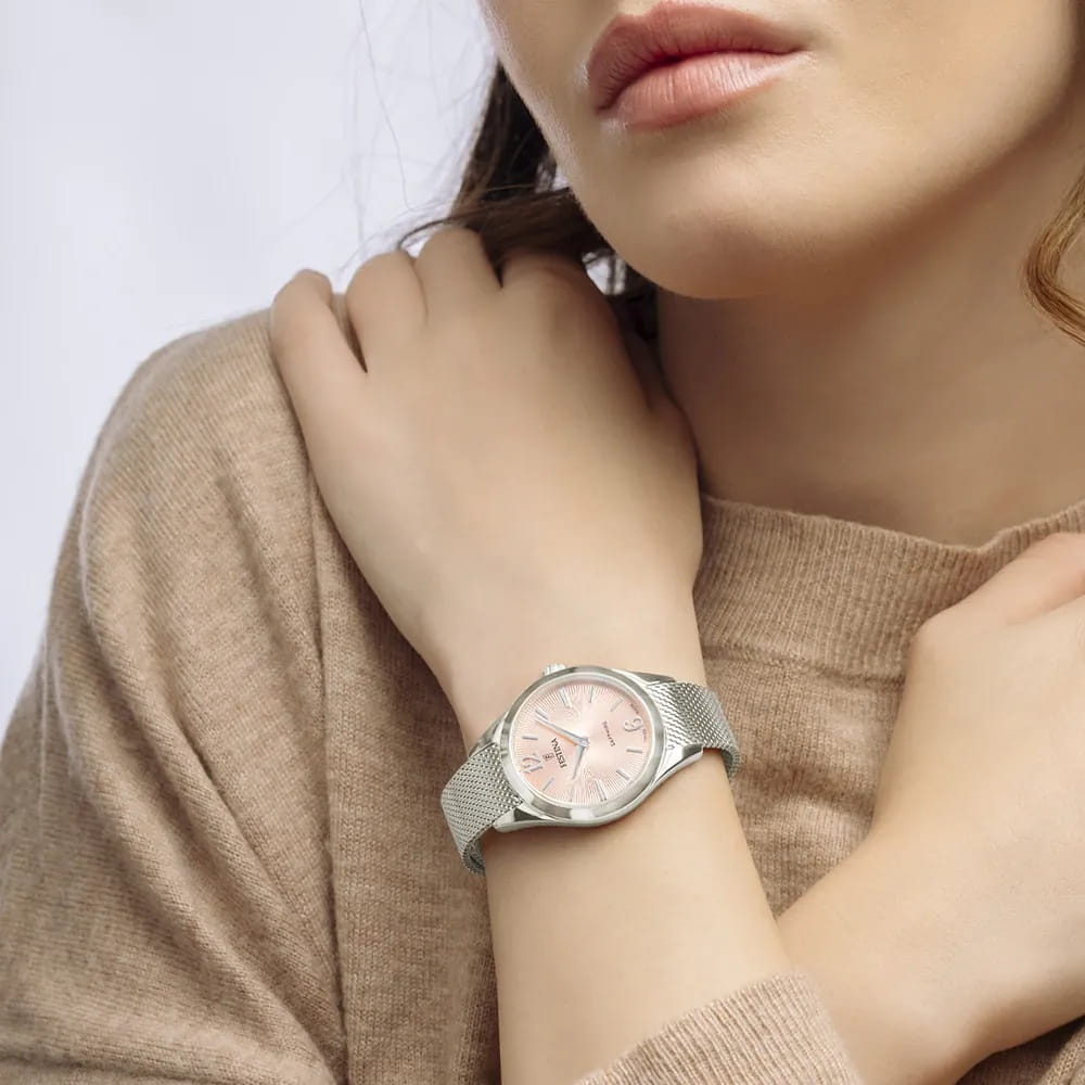 Женские кварцевые часы Festina F20076/2 из коллекции Swiss Made — это элегантный аксессуар с швейцарским качеством и изысканным дизайном. Корпус диаметром 32 мм и толщиной 7,3 мм выполнен из нержавеющей стали серебряного цвета. Циферблат розового цвета оформлен минималистично, с тонкими метками. Циферблат защищён сапфировым стекломСапфировое стеклоПрочный и надёжный материал из кристалла сапфира синтетического происхождения, характеризующийся особой твёрдостью и устойчивостью к царапинам и повреждениям.. Заводная головка — вытягивающегося типа, задняя крышка — прижимная. Часы оснащены стальным браслетом миланского плетения с раскладным замкомРаскладной замокДанный вариант застежки используется только на часах с металлическим браслетом. Отличительная особенность такого крепления в том, что длина браслета становится универсальной и вы можете самостоятельно отрегулировать нужный вам размер – застежка просто двигается по браслету часов.. Механизм — кварцевый калибр Ronda 762 с 10-летним сроком службы батареи. Водонепроницаемость 50 м позволяет использовать часы в повседневных условиях, защищая от брызг и дождя. Универсальный выбор для тех, кто ценит лаконичность, стиль и долговечность.