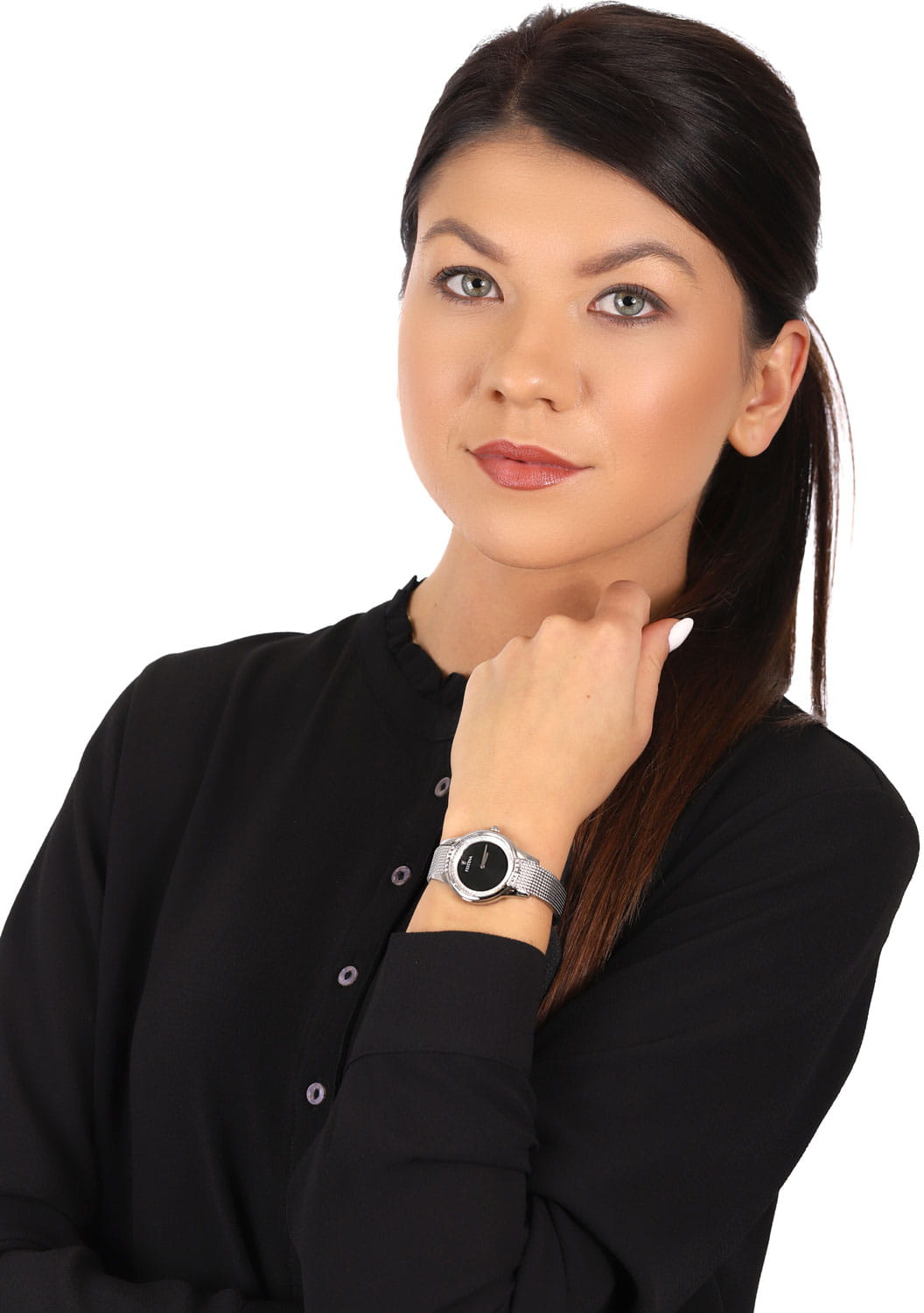 Яркий стиль и функциональность этих часов придутся по душе активной девушке. Кварцевый механизм с высокой точностью. Минеральное стеклоМинеральное стеклоМинеральное стекло представляет собой искусственно выращенный минерал кварца. Такое стекло отличается особой устойчивостью к повреждениям и царапинам. Уступает по некоторым качествам сапфировому стеклу. устойчивое к появлению царапин, обладающее высокой прозрачностью. Класс водозащиты: 50 метров, позволит защитить корпус от случайных брызг или капель дождя. Корпус часов изготовлен из нержавеющей стали 316L. БезельБезельВнешний ободок, закрепляющий стекло. В спортивных часах так называется поворотное кольцо с делениями на циферблате, выполняет роль таймера – замеряет отрезки времени на шкале. Неподвижный безель – элемент декора. Однонаправленно вращающийся безель на дайверских часах позволяет фиксировать моменты погружения и выныривания на поверхность. украшен цирконами. Браслет с раскладной застёжкойРаскладная застёжкаТакой тип застёжки используется только на браслетах из металла. Она никогда не раскрывается полностью, происходит разделение на 2 и более частей. Раскладывающая застёжка снизит вероятность потери часов к минимуму..