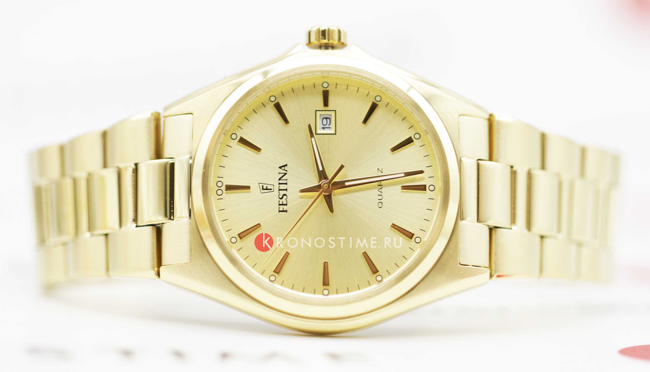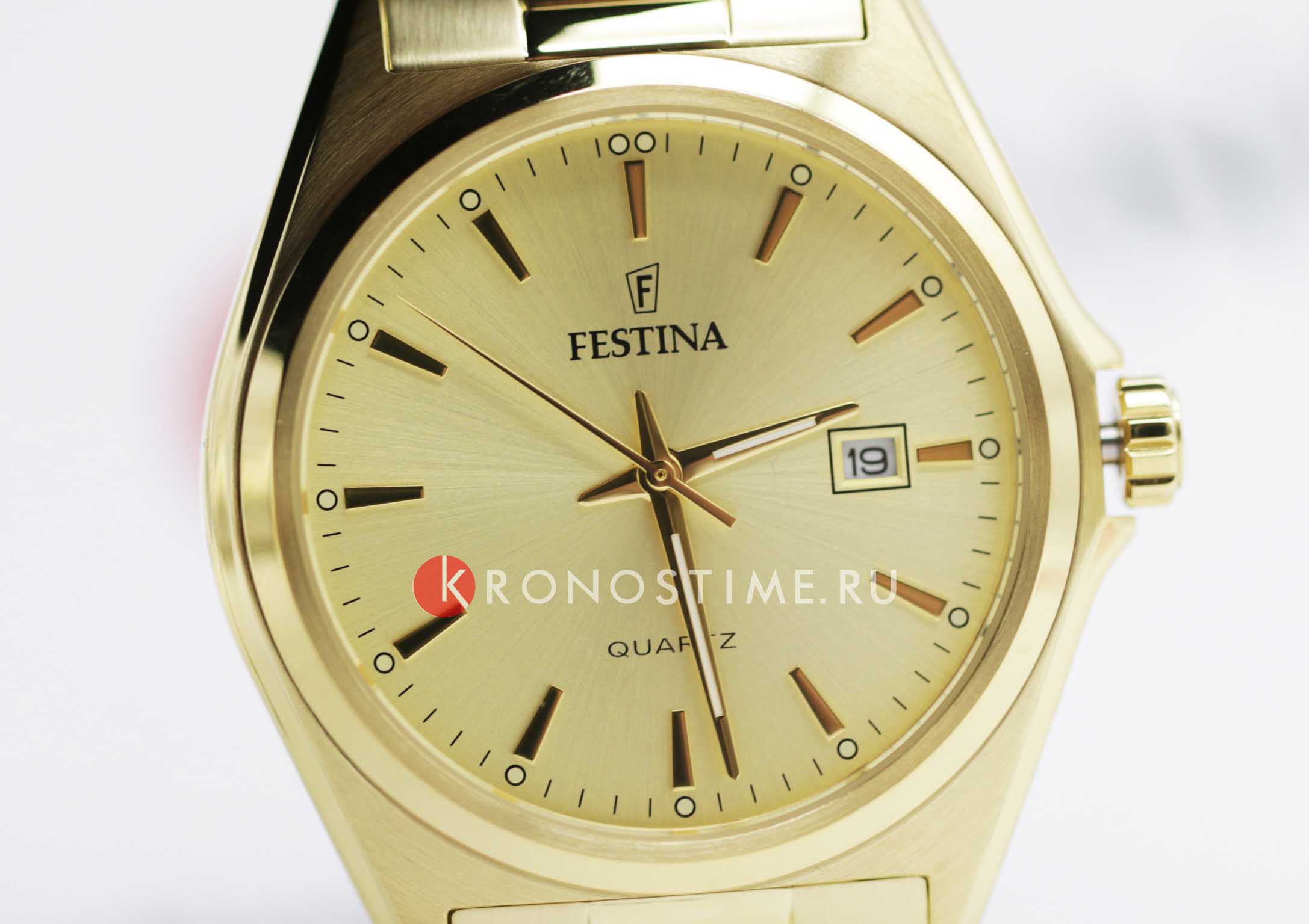 Наручные мужские часы с окошком даты Festina Clasico F20555/3, кварцевый механизм с высокой точностью, минеральное стеклоМинеральное стеклоМинеральное стекло представляет собой искусственно выращенный минерал кварца. Такое стекло отличается особой устойчивостью к повреждениям и царапинам. Уступает по некоторым качествам сапфировому стеклу.. Класс водозащиты: 50 метров, позволит защитить часы от случайных брызг воды. Корпус и браслет часов изготовлены из стали с PVDPVDУльтратонкое покрытие наносится в технике вакуумного напыления, сочетает в себе нитрид титана особой прочности со слоем золота или оксида хрома. Несёт в себе декоративную или защитную функцию. покрытием. Браслет на раскладной застёжкеРаскладная застёжкаТакой тип застёжки используется только на браслетах из металла. Она никогда не раскрывается полностью, происходит разделение на 2 и более частей. Раскладывающая застёжка снизит вероятность потери часов к минимуму.