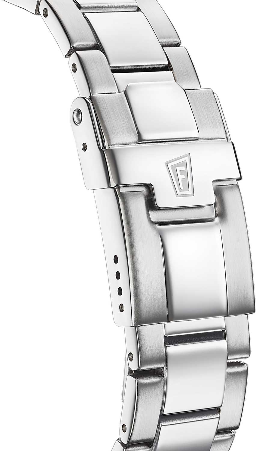 Яркий стиль и функциональность этих часов придутся по душе активной девушке. Часы-хронографХронографФункция позволяет измерять отрезки времени с особой точностью: часы, минуты, секунды. Верным признаком хронографа является наличие на циферблате 3 дополнительных окошек-счётчиков.. Кварцевый механизм с высокой точностью. Минеральное стеклоМинеральное стеклоМинеральное стекло представляет собой искусственно выращенный минерал кварца. Такое стекло отличается особой устойчивостью к повреждениям и царапинам. Уступает по некоторым качествам сапфировому стеклу. устойчивое к появлению царапин, обладающее высокой прозрачностью. Перламутровый циферблат. Метки украшены кристаллами. Класс водозащиты: 100 метров, позволит плавать, нырять и заниматься другими водными видами спорта. Корпус часов изготовлен из нержавеющей стали. Неподвижный безельБезельВнешний ободок, закрепляющий стекло. В спортивных часах так называется поворотное кольцо с делениями на циферблате, выполняет роль таймера – замеряет отрезки времени на шкале. Неподвижный безель – элемент декора. Однонаправленно вращающийся безель на дайверских часах позволяет фиксировать моменты погружения и выныривания на поверхность.. Браслет с раскладной застёжкойРаскладная застёжкаТакой тип застёжки используется только на браслетах из металла. Она никогда не раскрывается полностью, происходит разделение на 2 и более частей. Раскладывающая застёжка снизит вероятность потери часов к минимуму..