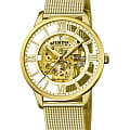 Мужские механические часы-скелетоны Festina Automatic F20667/1, механический механизм (автоматический калибр) с высокой точностью. Сапфировое стеклоСапфировое стеклоПрочный и надёжный материал из кристалла сапфира синтетического происхождения, характеризующийся особой твёрдостью и устойчивостью к царапинам и повреждениям. устойчивое к появлению царапин, обладающее высокой прозрачностью. Класс водозащиты: 50 метров, позволит защитить корпус от случайных брызг или капель дождя. Корпус часов изготовлен из стали с PVD-покрытиемPVDУльтратонкое покрытие наносится в технике вакуумного напыления, сочетает в себе нитрид титана особой прочности со слоем золота или оксида хрома. Несёт в себе декоративную или защитную функцию.. Стальной браслет на раскладной застёжкеРаскладная застёжкаТакой тип застёжки используется только на браслетах из металла. Она никогда не раскрывается полностью, происходит разделение на 2 и более частей. Раскладывающая застёжка снизит вероятность потери часов к минимуму. с PVD-покрытиемPVDУльтратонкое покрытие наносится в технике вакуумного напыления, сочетает в себе нитрид титана особой прочности со слоем золота или оксида хрома. Несёт в себе декоративную или защитную функцию.. Циферблат с метками в виде штрихов и римских цифр. Рифленая заводная головка. Прозрачная задняя крышка. Браслет миланского плетения.