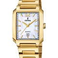 Наручные женские часы Festina On the square F20680/2, кварцевый механизм с высокой точностью. Минеральное стеклоМинеральное стеклоМинеральное стекло представляет собой искусственно выращенный минерал кварца. Такое стекло отличается особой устойчивостью к повреждениям и царапинам. Уступает по некоторым качествам сапфировому стеклу. устойчивое к потертостям. Класс водозащиты: 50 метров, позволит защитить корпус от случайных брызг или капель дождя. Корпус и браслет часов изготовлены из стали с PVD-покрытиемPVDУльтратонкое покрытие наносится в технике вакуумного напыления, сочетает в себе нитрид титана особой прочности со слоем золота или оксида хрома. Несёт в себе декоративную или защитную функцию.. Браслет на раскладной застёжкеРаскладная застёжкаТакой тип застёжки используется только на браслетах из металла. Она никогда не раскрывается полностью, происходит разделение на 2 и более частей. Раскладывающая застёжка снизит вероятность потери часов к минимуму..