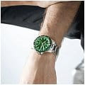 Кварцевый механизм с высокой точностью. Минеральное стеклоМинеральное стеклоМинеральное стекло представляет собой искусственно выращенный минерал кварца. Такое стекло отличается особой устойчивостью к повреждениям и царапинам. Уступает по некоторым качествам сапфировому стеклу. устойчивое к появлению царапин, обладающее высокой прозрачностью. Класс водозащиты: 100 метров, позволит плавать, нырять и заниматься другими водными видами спорта. Корпус часов изготовлен из титана. Браслет из титана с раскладной застёжкойРаскладная застёжкаТакой тип застёжки используется только на браслетах из металла. Она никогда не раскрывается полностью, происходит разделение на 2 и более частей. Раскладывающая застёжка снизит вероятность потери часов к минимуму.. Стрелки и метки с люминесцентным покрытиемЛюминесцентное покрытиеПозволяет считывать показания времени в темноте. Производители наносят на стрелки, часовые индексы, безель или поверхность циферблата светонакопительный состав, дающий холодное свечение.. Люминесцентное покрытиеЛюминесцентное покрытиеПозволяет считывать показания времени в темноте. Производители наносят на стрелки, часовые индексы, безель или поверхность циферблата светонакопительный состав, дающий холодное свечение. на стрелках и метках часов.