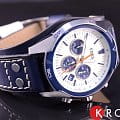 Мужские наручные часы, оснащённые хронографом с тахометрической шкалой, выполненные в спортивном стиле на широком кожаном ремешке.