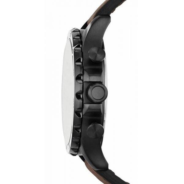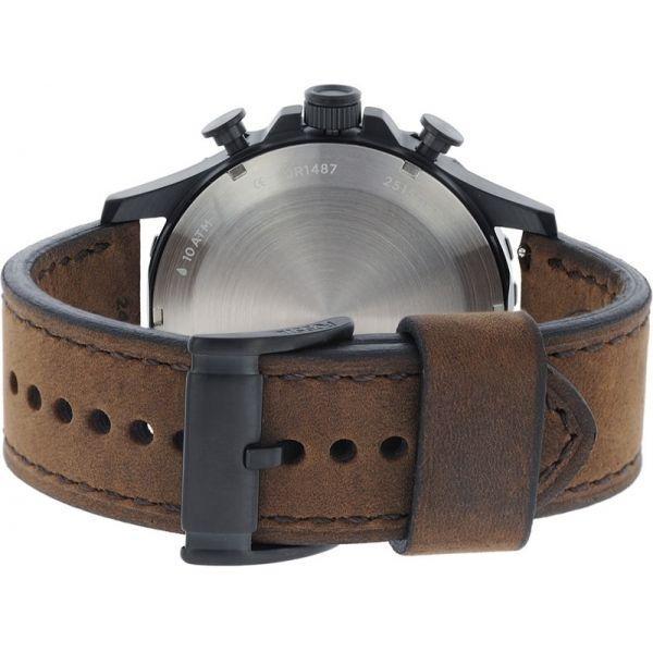 Наручные часы от популярного американского бренда Fossil - они будут замечательно смотреться как с повседневным стилем одежды, так и костюмом;  браслет: кожа; корпус: сталь; цвет браслета: темно-коричневый; цвет корпуса: черный; цвет циферблата: черный; ширина браслета: 22MM; водонепроницаемость: 10 ATM; диаметр корпуса: 50MM