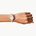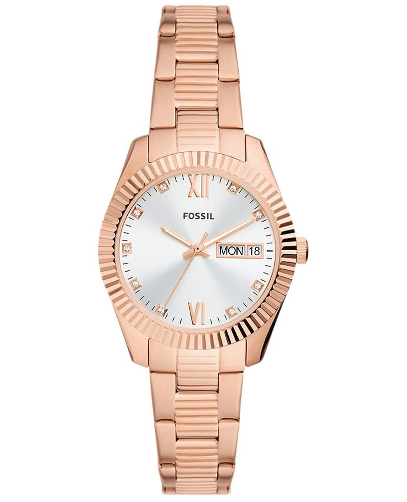 Женские американские кварцевые часы Fossil Scarlette ES5200, кварцевый механизм с высокой точностью. Класс водозащиты: 50 метров, позволит защитить корпус от случайных брызг или капель дождя. Корпус часов изготовлен из стали с IP-покрытиемIP-покрытиеМетод ионного напыления. Демонстрирует повышенную устойчивость к истиранию, окислению и химическим веществам. Под воздействием высокого давления и температуры около 1500°C молекулы металла надёжно соединяются с частицами корпуса часов.. Стальной браслет с раскладной застёжкойРаскладная застёжкаТакой тип застёжки используется только на браслетах из металла. Она никогда не раскрывается полностью, происходит разделение на 2 и более частей. Раскладывающая застёжка снизит вероятность потери часов к минимуму. с IP-покрытиемIP-покрытиеМетод ионного напыления. Демонстрирует повышенную устойчивость к истиранию, окислению и химическим веществам. Под воздействием высокого давления и температуры около 1500°C молекулы металла надёжно соединяются с частицами корпуса часов.. Окошки дня недели и даты находятся в положении 3 часа. Циферблат инкрустирован кристаллами. Стрелки с люминесцентным покрытиемЛюминесцентное покрытиеПозволяет считывать показания времени в темноте. Производители наносят на стрелки, часовые индексы, безель или поверхность циферблата светонакопительный состав, дающий холодное свечение..
