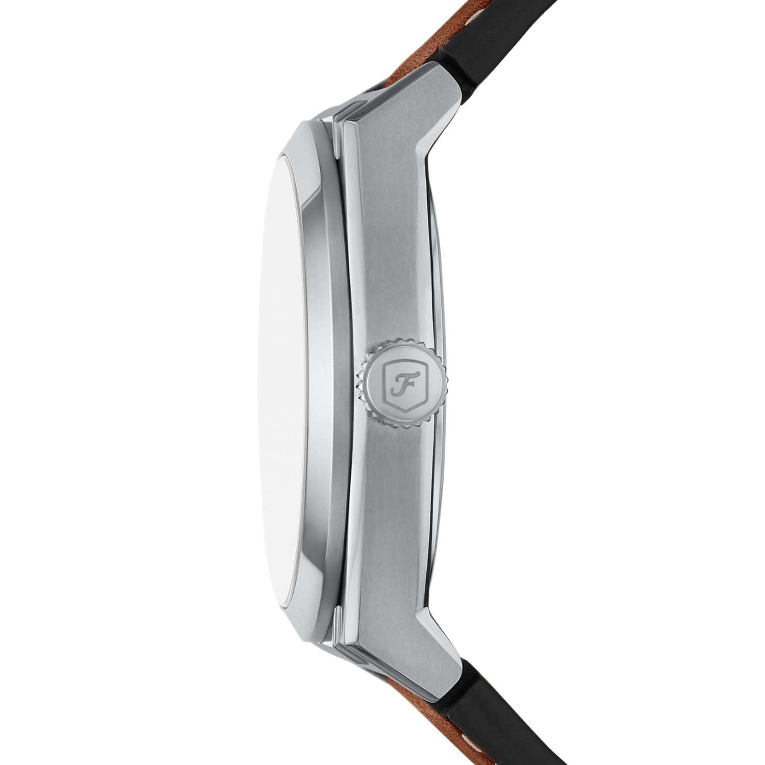 Мужские кварцевые часы Fossil — это стильный аксессуар для повседневного ношения. Корпус диаметром 42 мм выполнен из нержавеющей стали. Циферблат синего цвета оформлен индексами и стрелками, включая центральную секундную стрелку. Окошко даты расположено в положении 6 часов. Циферблат защищён минеральным стекломМинеральное стеклоМинеральное стекло представляет собой искусственно выращенный минерал кварца. Такое стекло отличается особой устойчивостью к повреждениям и царапинам. Уступает по некоторым качествам сапфировому стеклу.. Часы оснащены коричневым кожаным ремешком шириной 18 мм на классической пряжке. Водонепроницаемость 50 м позволяет использовать часы в повседневных условиях. Идеальный выбор для тех, кто ценит американское качество и классический дизайн.