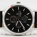Мужские английские часы Greenwich Moon Walker GW 058.11.31 с минеральным стекломМинеральное стеклоМинеральное стекло представляет собой искусственно выращенный минерал кварца. Такое стекло отличается особой устойчивостью к повреждениям и царапинам. Уступает по некоторым качествам сапфировому стеклу.. В часах привлекает сочетание спортивного дизайна и классических линий корпуса из нержавеющей стали. Кварцевый механизм показывает время с точностью до секунды, дату, день недели. Все индикаторы на черном циферблате хорошо читаются, они выделены накладными рамками с зеркальной полировкой. В позиции «6 часов» расположен индикатор лунных фаз. Его украшением служит элемент с объемным рисунком, напоминающем изрытую кратерами поверхность спутника нашей планеты. Крупные стрелки и риски видны при любых условиях благодаря люминесцентному покрытиюЛюминесцентное покрытиеПозволяет считывать показания времени в темноте. Производители наносят на стрелки, часовые индексы, безель или поверхность циферблата светонакопительный состав, дающий холодное свечение., которое в темноте светится приятным для глаз зеленоватым свечением. Повышенная водостойкость равна 10 атмосфер.