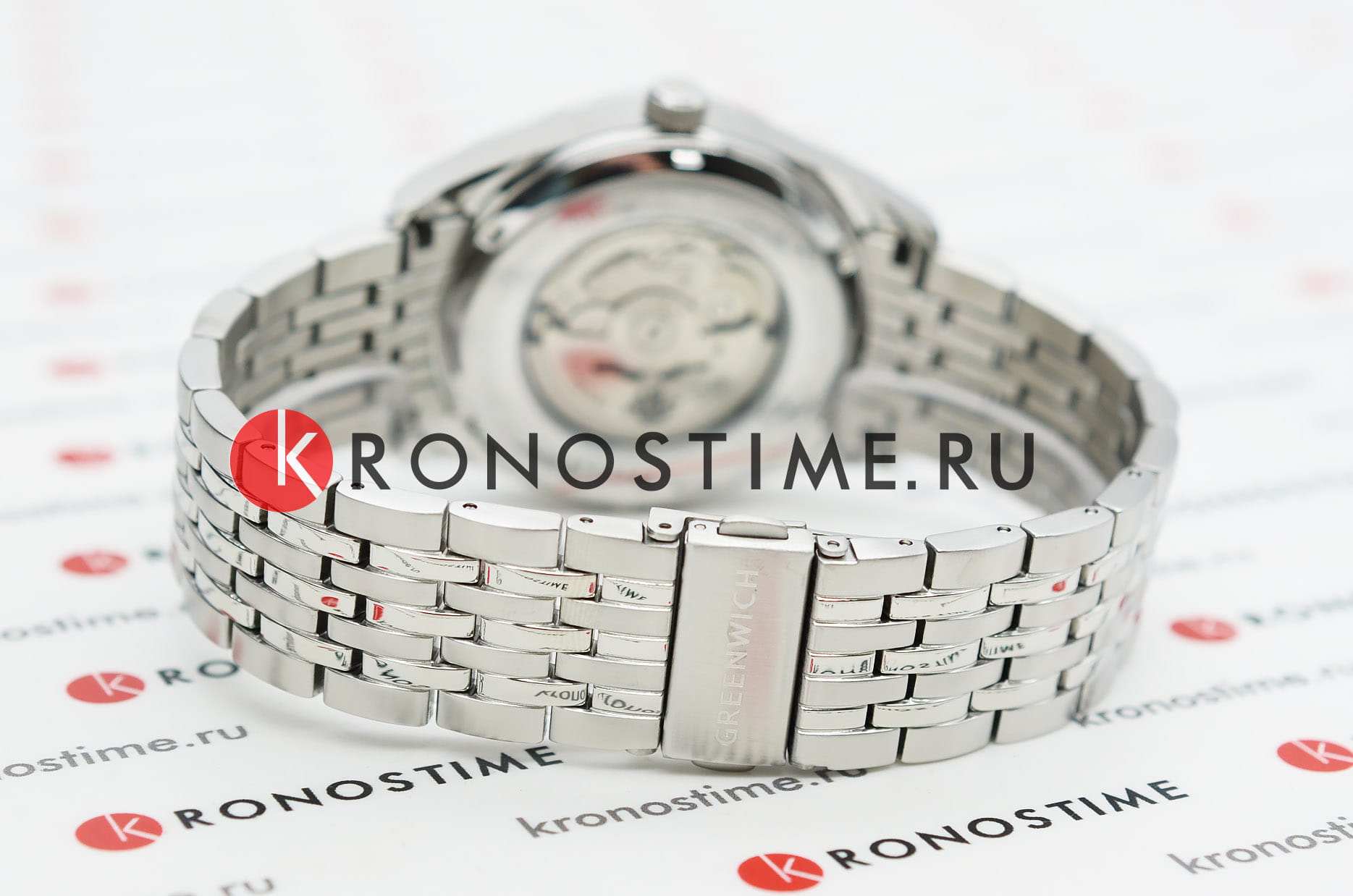 Мужские часы с минеральным стекломМинеральное стеклоМинеральное стекло представляет собой искусственно выращенный минерал кварца. Такое стекло отличается особой устойчивостью к повреждениям и царапинам. Уступает по некоторым качествам сапфировому стеклу. Greenwich Good Luck Classic GW 074.10.36, представляют собой классический вариант для повседневной носки. В центральной части циферблата — отличительная черта моделей этой серии: гильоше, объемные линии которого напоминают волны. Обратите внимание на форму пластины, где крепятся накладные риски: она сделана в форме латинской буквы G, первой буквы в названии бренда. Часы характеризуются традиционными формами, лаконичным исполнением, что делает модель элегантным дополнением к деловому костюму. Сквозь прозрачную заднюю крышку вы увидите детали механизма TMI с декорированным ротором: на нем выгравировано изображение символа английских моряков — парусника. Браслет и застежка-клипса выполнены из гипоаллергенной нержавеющей стали. Дизайн, актуальный для любого современного образа, и надежность используемых материалов делают автоматические часы Greenwich удобным и стильным аксессуаром на каждый день.
