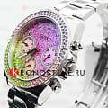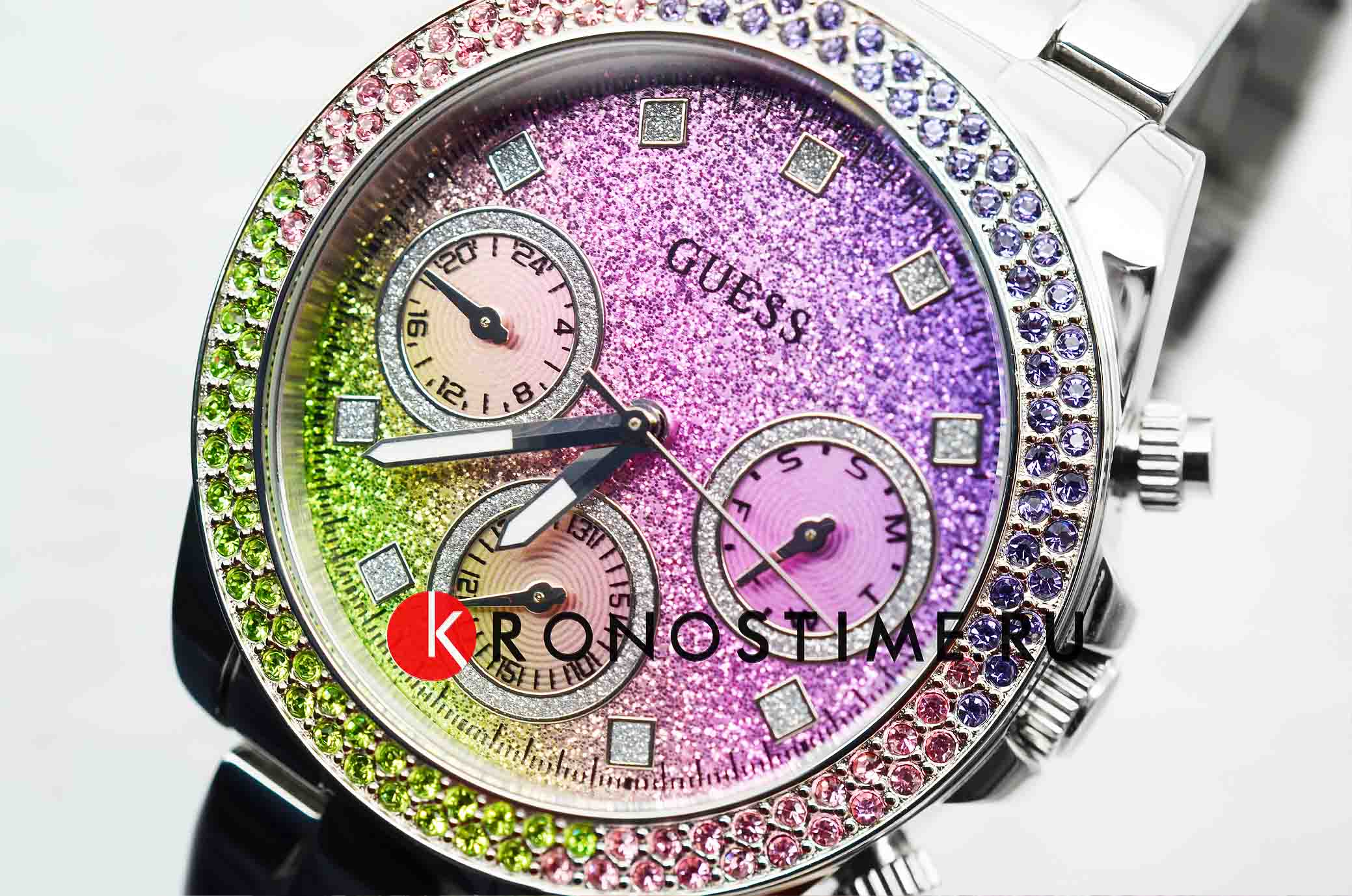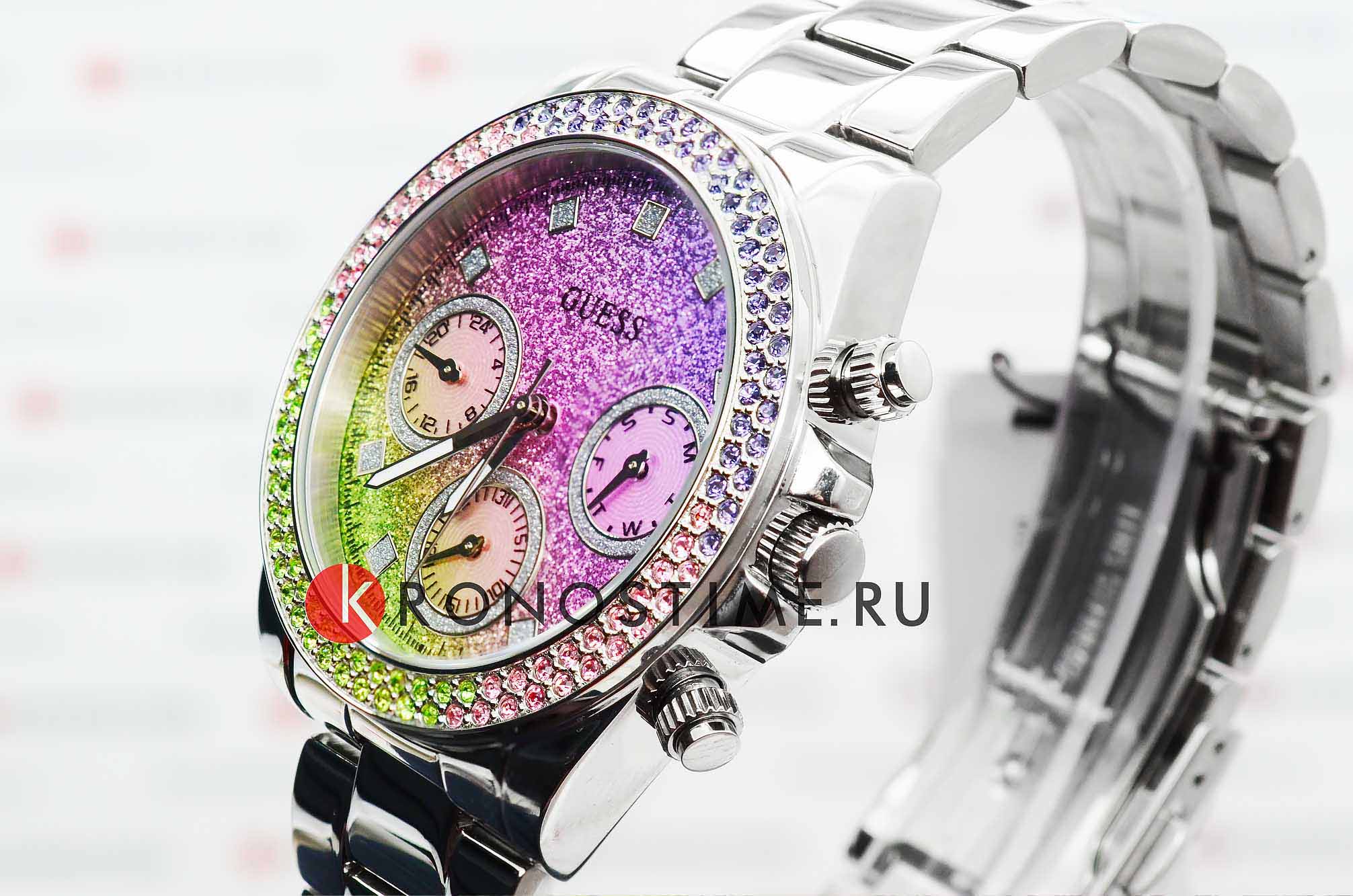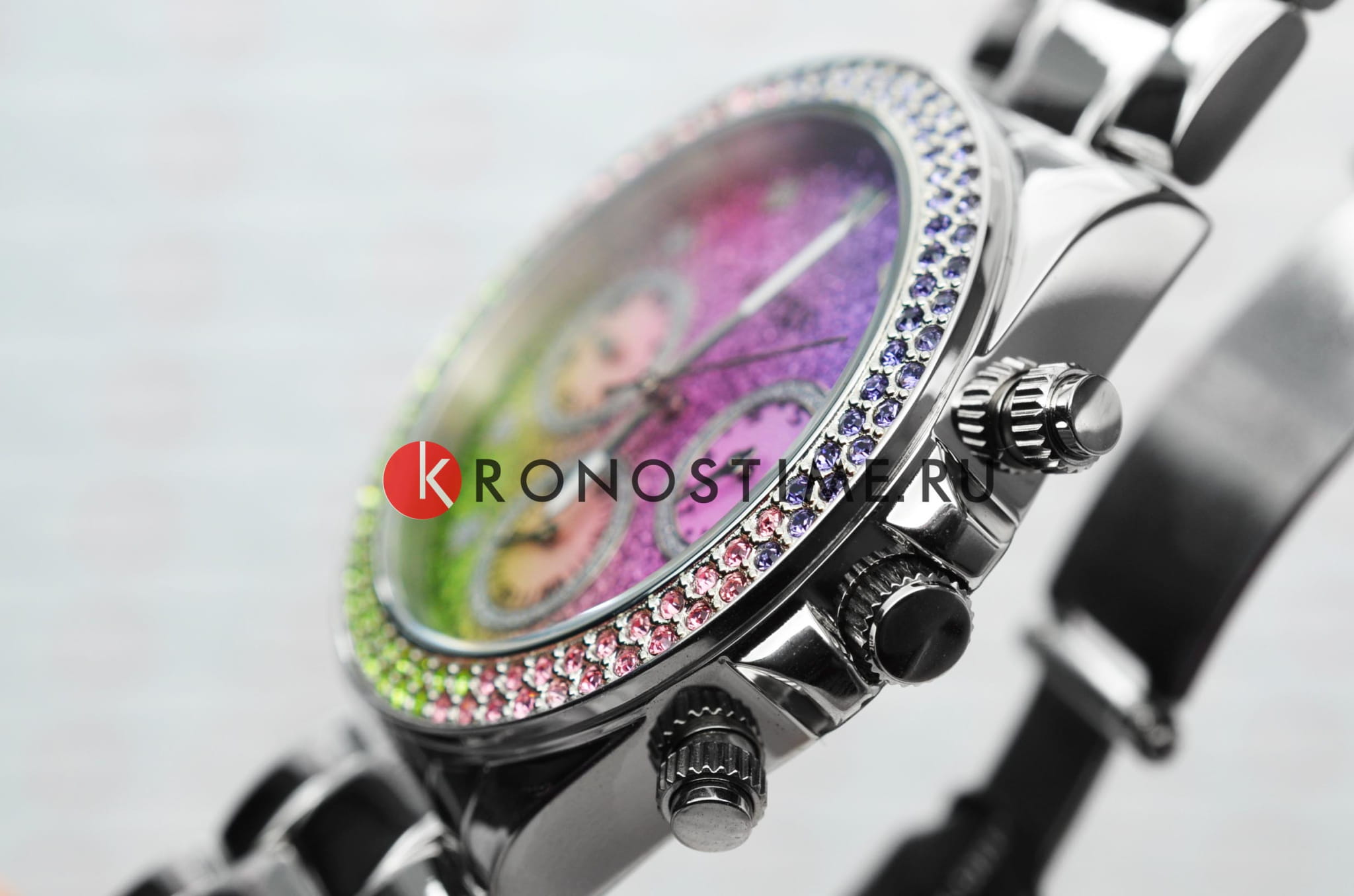 Безукоризненный функциональный аксессуар, сотканный из стали и разноцветных кристаллов, покорит ваше сердце с первого взгляда. Блистательные женские часы Sol. Круглый стальной корпус украшенный кристаллами. Глиттерный циферблат с метками в виде точек из кристаллов, защинен минеральным стекломМинеральное стеклоМинеральное стекло представляет собой искусственно выращенный минерал кварца. Такое стекло отличается особой устойчивостью к повреждениям и царапинам. Уступает по некоторым качествам сапфировому стеклу.. 12-ти и 24-х часовой формат времени. Дата и день недели вынесены на отдельные циферблаты. Рифленая заводная головка с защитой. Стальной браслет с раскладной застёжкойРаскладная застёжкаТакой тип застёжки используется только на браслетах из металла. Она никогда не раскрывается полностью, происходит разделение на 2 и более частей. Раскладывающая застёжка снизит вероятность потери часов к минимуму.