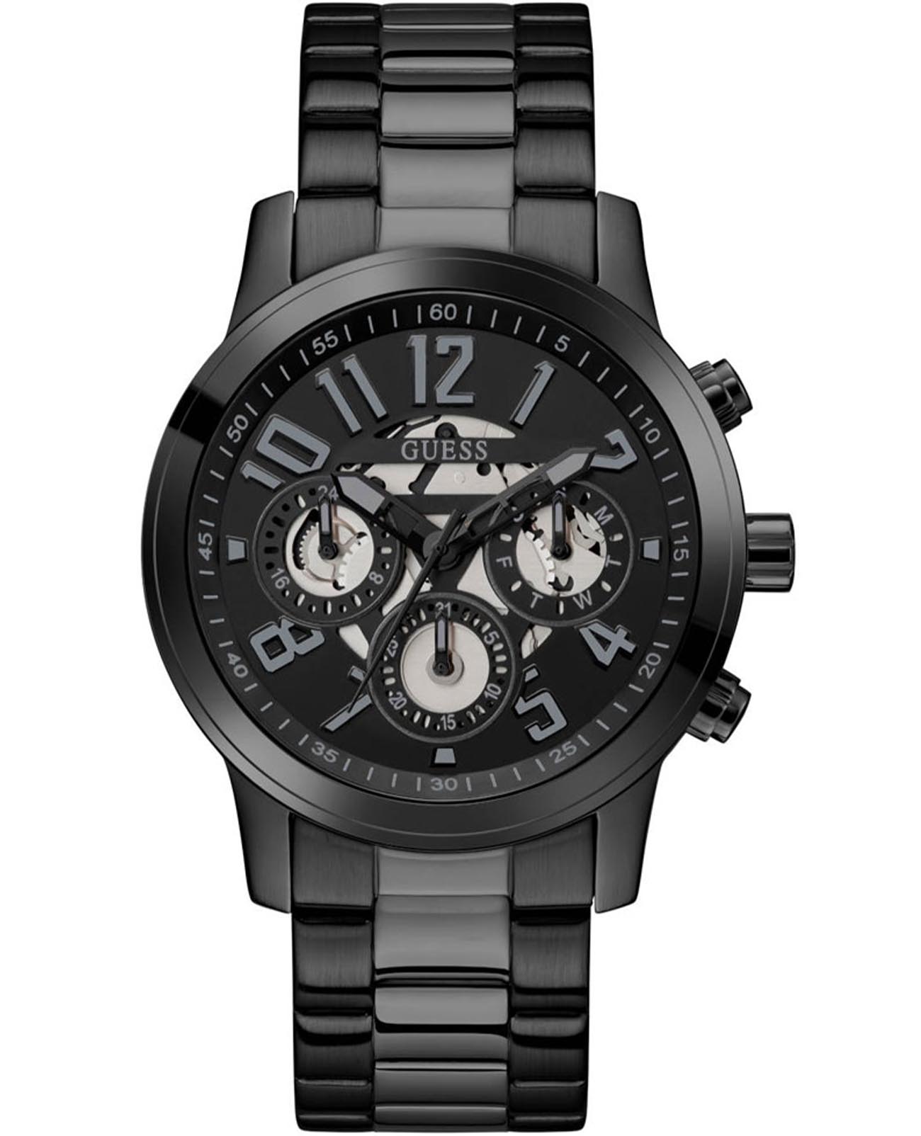 Мужские наручные часы с минеральным стекломМинеральное стеклоМинеральное стекло представляет собой искусственно выращенный минерал кварца. Такое стекло отличается особой устойчивостью к повреждениям и царапинам. Уступает по некоторым качествам сапфировому стеклу. Guess Dress GW0627G3, кварцевый механизм с высокой точностью. Класс водозащиты: 50 метров, позволит защитить корпус от случайных брызг или капель дождя. Корпус часов изготовлен из стали с IP-покрытиемIP-покрытиеМетод ионного напыления. Демонстрирует повышенную устойчивость к истиранию, окислению и химическим веществам. Под воздействием высокого давления и температуры около 1500°C молекулы металла надёжно соединяются с частицами корпуса часов.. Стальной браслет на раскладной застёжкеРаскладная застёжкаТакой тип застёжки используется только на браслетах из металла. Она никогда не раскрывается полностью, происходит разделение на 2 и более частей. Раскладывающая застёжка снизит вероятность потери часов к минимуму. IP-покрытиемIP-покрытиеМетод ионного напыления. Демонстрирует повышенную устойчивость к истиранию, окислению и химическим веществам. Под воздействием высокого давления и температуры около 1500°C молекулы металла надёжно соединяются с частицами корпуса часов..