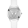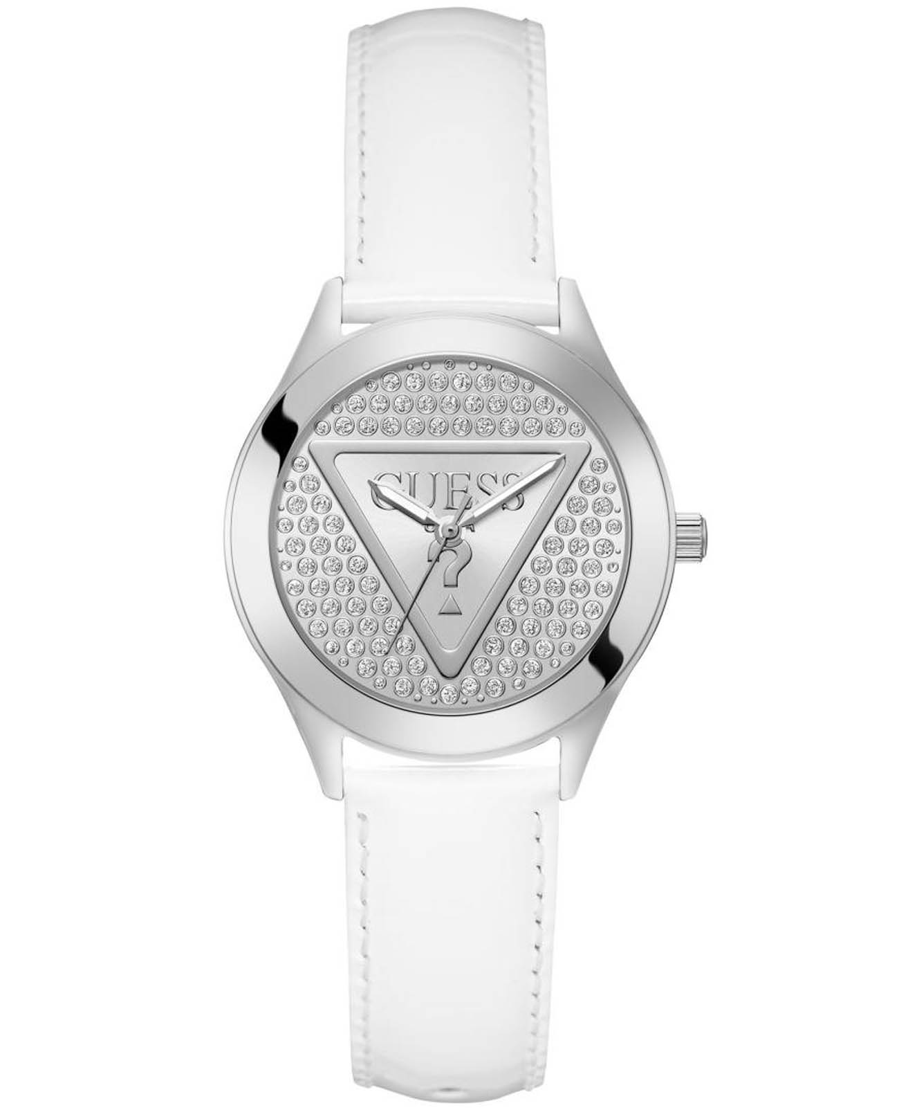 Женские наручные часы Guess Trend GW0745L3 с минеральным стекломМинеральное стеклоМинеральное стекло представляет собой искусственно выращенный минерал кварца. Такое стекло отличается особой устойчивостью к повреждениям и царапинам. Уступает по некоторым качествам сапфировому стеклу., кварцевый механизм с высокой точностью. Корпус часов изготовлен из стали. Циферблат украшен кристаллами. Стрелки с люминесцентным покрытиемЛюминесцентное покрытиеПозволяет считывать показания времени в темноте. Производители наносят на стрелки, часовые индексы, безель или поверхность циферблата светонакопительный состав, дающий холодное свечение.. Класс водозащиты: 30 метров, позволит защитить корпус от случайных брызг или капель дождя. Кожаный ремешок на стандартной застежке.