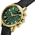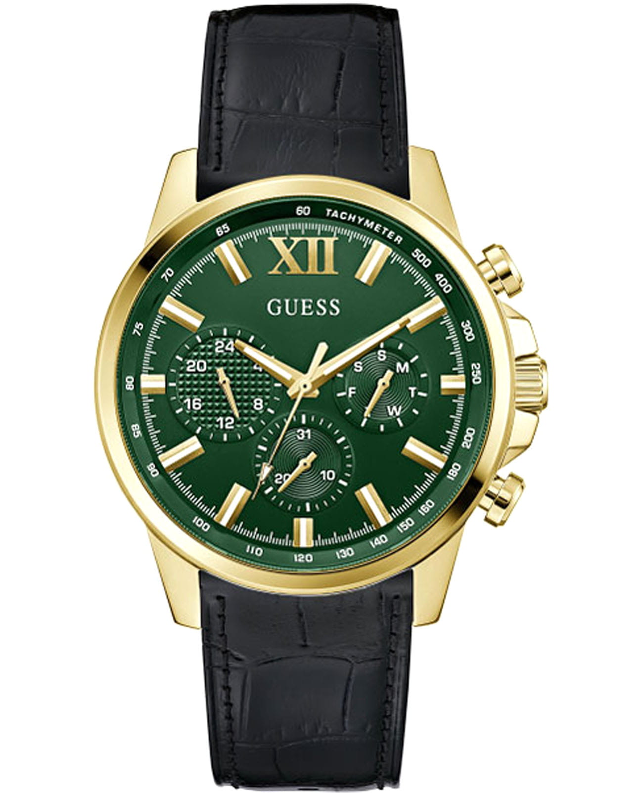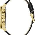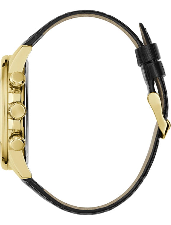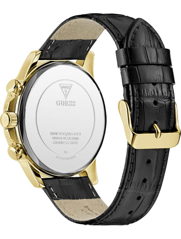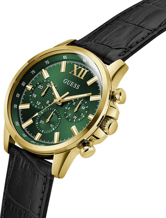 Стильные и функциональные часы Guess GW0901G4 оснащены кварцевым механизмом, что обеспечивает точность и надежность в использовании. Корпус выполнен из прочной стали с золотистым PVD-покрытиемPVDУльтратонкое покрытие наносится в технике вакуумного напыления, сочетает в себе нитрид титана особой прочности со слоем золота или оксида хрома. Несёт в себе декоративную или защитную функцию., придающей изделиям утонченный и современный вид. Циферблат украшен метками в виде штрихов и римской цифрой XII, обеспечивающими легкое считывание времени. Время отображается в двух форматах — 12-ти и 24-х часовом, что удобно для тех, кто привык к разным системам времени. Дополнительные циферблаты показывают дату и день недели, что позволяет всегда быть в курсе текущей даты без необходимости использования других устройств. Часы также оснащены тахиметромТахиметрРазмеченная шкала, располагается на ободке или безеле часов. Тахиметр позволяет рассчитать скорость на определённом участке пути, расстояние измеряется в километрах или милях., что добавляет им функциональности и может быть полезно для измерения скорости. Люминесцентное покрытиеЛюминесцентное покрытиеПозволяет считывать показания времени в темноте. Производители наносят на стрелки, часовые индексы, безель или поверхность циферблата светонакопительный состав, дающий холодное свечение. на стрелках и метках обеспечивает отличную видимость в темноте. Минеральное стеклоМинеральное стеклоМинеральное стекло представляет собой искусственно выращенный минерал кварца. Такое стекло отличается особой устойчивостью к повреждениям и царапинам. Уступает по некоторым качествам сапфировому стеклу. защищает циферблат от царапин и повреждений, а водозащита 50WR позволяет не волноваться о случайных контактах с водой, например, во время дождя. Кожаный черный ремешок с классической застежкой обеспечивает надежную фиксацию часов на руке и комфорт в ношении. Рифленая заводная головка с защитой добавляет изысканности и одновременно защищает механизм от повреждений. Эти часы идеально подойдут для тех, кто ценит стиль, функциональность и качество в одном аксессуаре.