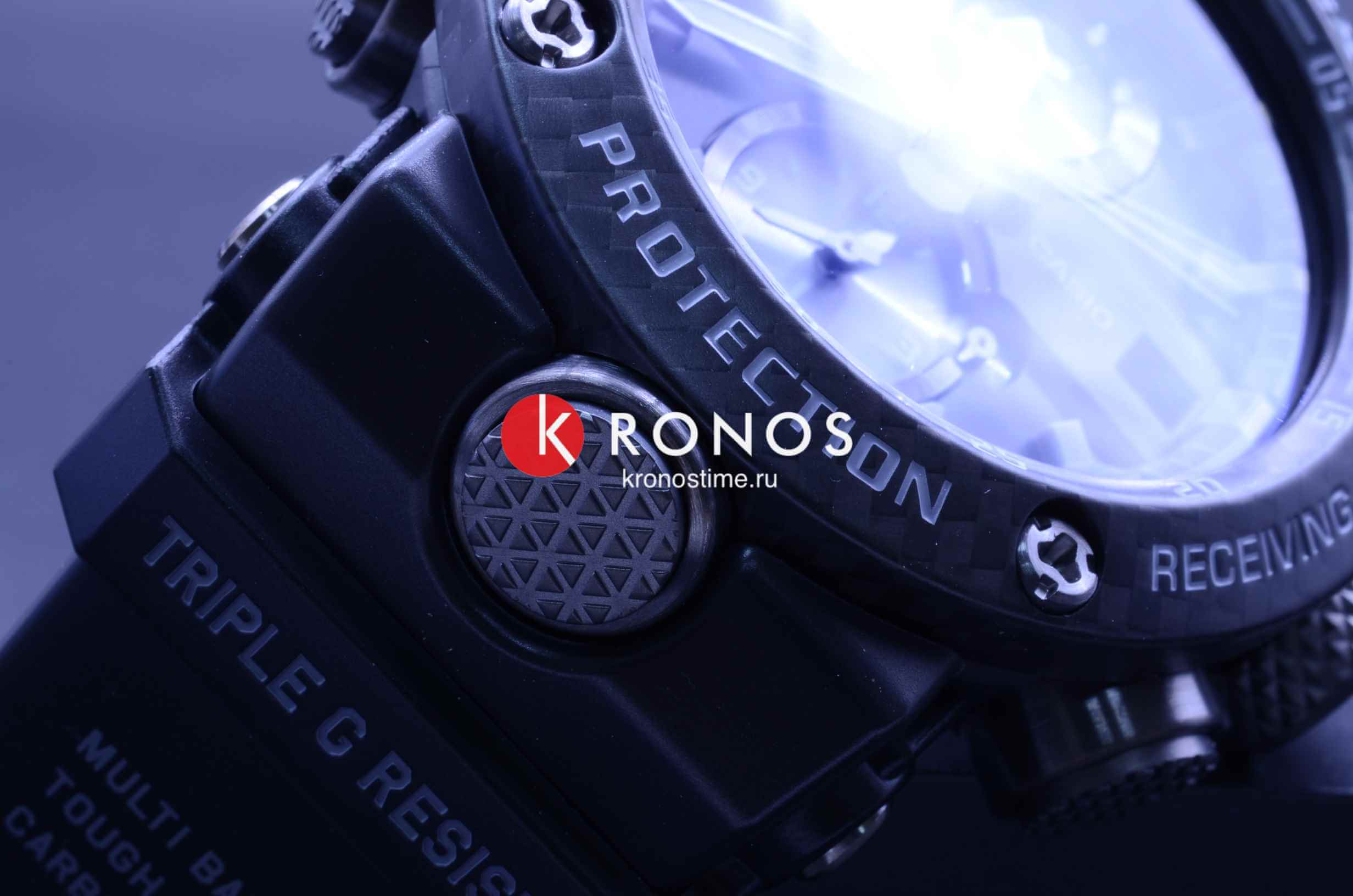 Внушительный аксессуар стильно смотрится на широком запястье, гармонично смотрятся крупные детали и общее тёмное исполнение. Задняя крышка здесь отсутствует, ударопрочный корпусУдаропрочный корпусМеханизм заключён в корпус, выполненный из современных материалов, устойчивых к ударам, механическим повреждениям и падению с высоты: инновационный пластик, карбон, нержавеющая сталь, титан. сделан из монолитного углеродного монокока, вдохновлённого конструкцией ранних самолётов. Он состоит из 52 карбоновых слоёв, уникальная текстура просматривается на боковых частях безеляБезельВнешний ободок, закрепляющий стекло. В спортивных часах так называется поворотное кольцо с делениями на циферблате, выполняет роль таймера – замеряет отрезки времени на шкале. Неподвижный безель – элемент декора. Однонаправленно вращающийся безель на дайверских часах позволяет фиксировать моменты погружения и выныривания на поверхность. – с успехом реализована технология Carbon Core GuardCarbon Core Guard Новейшая структура корпуса, разработанная Casio. Полиуретановая пластина дополнительно усилена карбоновыми вставками, что придаёт специальную защиту от механических повреждений. Карбон отличается лёгкостью и прочностью.. Полимерный ремешок тоже имеет усиление карбоновыми волокнами. Наручные часы обладают полезным функционалом: BluetoothBluetoothСовременная технология, позволяющая синхронизировать часы с телефоном и переносить данные. Часы с Bluetooth расширяют возможности вашего смартфона и делают его использование ещё более удобным., будильник, мировое времяМировое время Полезное часовое усложнение, отображающее время в основных городах и известных областях по всему миру, оно связано с часовыми поясами, удобно для путешественников и бизнесменов. , таймер, приём радиосигнала, питание от солнечной батареи . Сапфировое стекло с антибликовой обработкой. Яркая люминесцентная подсветкаЛюминесцентное покрытиеПозволяет считывать показания времени в темноте. Производители наносят на стрелки, часовые индексы, безель или поверхность циферблата светонакопительный состав, дающий холодное свечение.. Габариты: 50,1 x 46,4 x 16,9 мм.