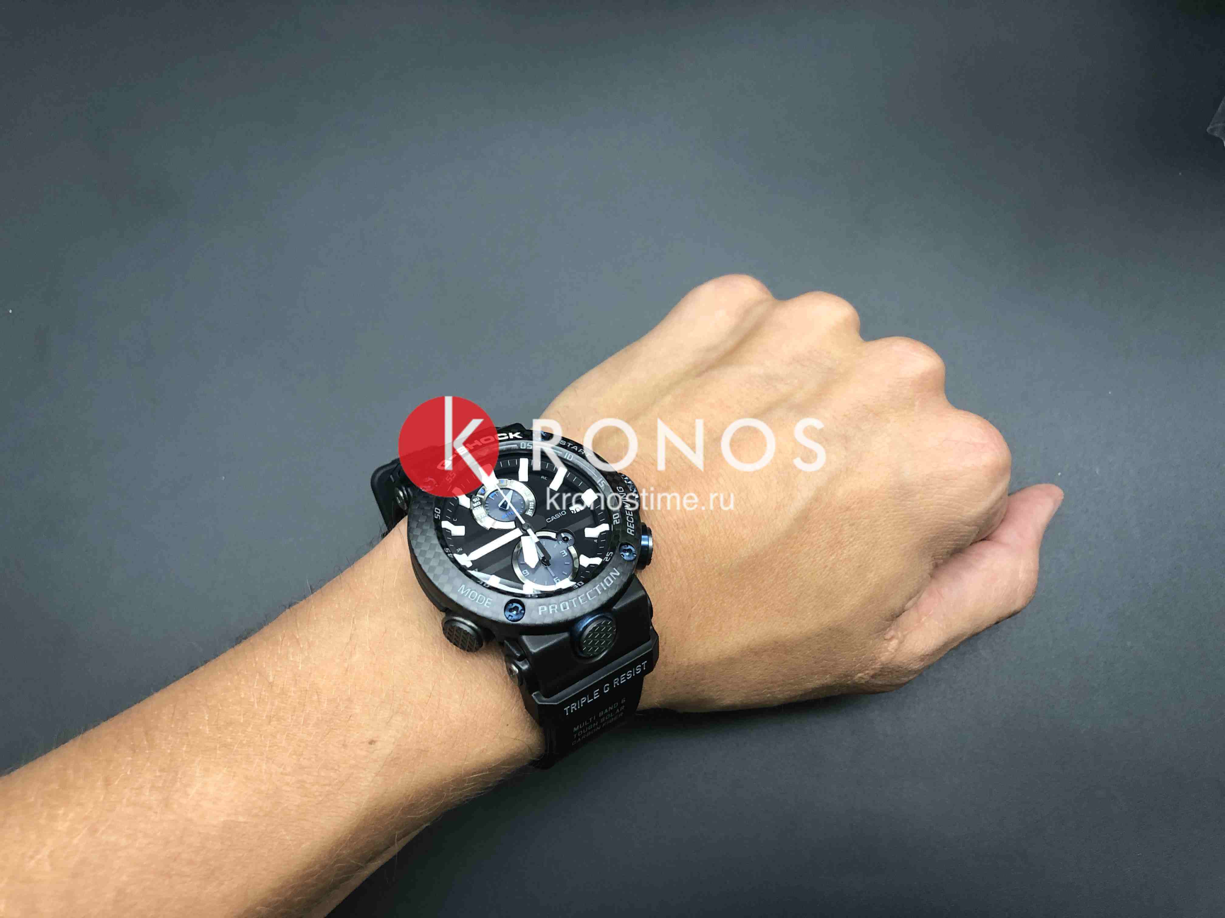Внушительный аксессуар стильно смотрится на широком запястье, гармонично смотрятся крупные детали в голубом цвете. Задняя крышка здесь отсутствует, ударопрочный корпусУдаропрочный корпусМеханизм заключён в корпус, выполненный из современных материалов, устойчивых к ударам, механическим повреждениям и падению с высоты: инновационный пластик, карбон, нержавеющая сталь, титан. сделан из монолитного углеродного монокока, вдохновлённого конструкцией ранних самолётов. Он состоит из 52 карбоновых слоёв, уникальная текстура просматривается на боковых частях безеляБезельВнешний ободок, закрепляющий стекло. В спортивных часах так называется поворотное кольцо с делениями на циферблате, выполняет роль таймера – замеряет отрезки времени на шкале. Неподвижный безель – элемент декора. Однонаправленно вращающийся безель на дайверских часах позволяет фиксировать моменты погружения и выныривания на поверхность. – с успехом реализована технология Carbon Core GuardCarbon Core Guard Новейшая структура корпуса, разработанная Casio. Полиуретановая пластина дополнительно усилена карбоновыми вставками, что придаёт специальную защиту от механических повреждений. Карбон отличается лёгкостью и прочностью.. Полимерный ремешок тоже имеет усиление карбоновыми волокнами. Наручные часы обладают полезным функционалом: BluetoothBluetoothСовременная технология, позволяющая синхронизировать часы с телефоном и переносить данные. Часы с Bluetooth расширяют возможности вашего смартфона и делают его использование ещё более удобным., будильник, мировое времяМировое время Полезное часовое усложнение, отображающее время в основных городах и известных областях по всему миру, оно связано с часовыми поясами, удобно для путешественников и бизнесменов. , таймер, приём радиосигнала, питание от солнечной батареи . Сапфировое стекло с антибликовой обработкой. Яркая люминесцентная подсветкаЛюминесцентное покрытиеПозволяет считывать показания времени в темноте. Производители наносят на стрелки, часовые индексы, безель или поверхность циферблата светонакопительный состав, дающий холодное свечение.. Габариты: 50,1 x 46,4 x 16,9 мм.