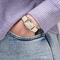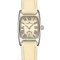 Элегантные женские кварцевые часы Hamilton American Classic Boulton Small Second Quartz M H13321821 сочетают ретро-дизайн 1940-х годов с современными акцентами. Прямоугольный корпус из полированной нержавеющей стали (24×27 мм, толщина 8.64 мм) с изогнутым сапфировым стекломСапфировое стеклоПрочный и надёжный материал из кристалла сапфира синтетического происхождения, характеризующийся особой твёрдостью и устойчивостью к царапинам и повреждениям. контрастирует с нежным ванильно-бежевым циферблатом, украшенным римскими цифрами лавандового оттенка и минутной шкалой. Фирменная рифлёная заводная головка подчёркивает аутентичность модели, а малая секундная стрелка на вспомогательном циферблате у отметки «6 часов» придаёт композиции баланс. Ремешок из телячьей кожи бежевого цвета. Механизм Swiss Quartz ETA 980.163 гарантирует точность хода, а ударопрочный корпусУдаропрочный корпусМеханизм заключён в корпус, выполненный из современных материалов, устойчивых к ударам, механическим повреждениям и падению с высоты: инновационный пластик, карбон, нержавеющая сталь, титан. с водонепроницаемостью 5 ATM (50 м) обеспечивает защиту от бытовых воздействий.