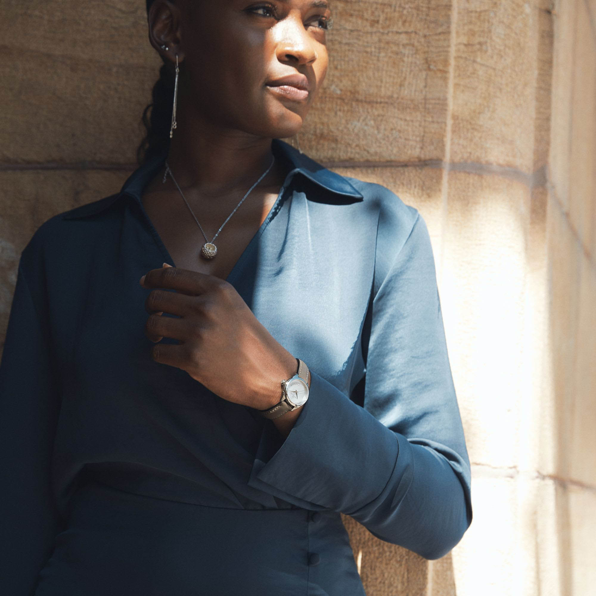 Плавные линии, насыщенные цвета и искорки сочетаются в поэтическом дизайне нашего Jazzmaster Lady Quartz. В сочетании с ремешком из мягкой на ощупь кожи 26-миллиметровый перламутровый циферблат придает непринужденную изысканность днем или ночью. Кварцевый механизм с высокой точностью. Сапфировое стеклоСапфировое стеклоПрочный и надёжный материал из кристалла сапфира синтетического происхождения, характеризующийся особой твёрдостью и устойчивостью к царапинам и повреждениям. устойчивое к появлению царапин, обладающее высокой прозрачностью. Циферблат украшен 5-ью бриллиантами. Класс водозащиты: 50 метров, позволит защитить корпус от случайных брызг или капель дождя. Корпус часов изготовлен из нержавеющей стали.