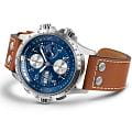 Мужские наручные часы Hamilton Khaki Aviation X-Wind Auto Chrono 44mm H77506540 сочетают в себе спортивный стиль и функциональность для профессионалов авиации. Модель обладает круглым корпусом диаметром 44 мм, изготовленным из нержавеющей стали, что обеспечивает высокую устойчивость к внешним воздействиям. Ремешок выполнен из кожи на стандартной застежке, гарантирующей комфортное ношение и безопасность. Синий циферблат оснащен крупными цифрами и стрелками с люминесцентным покрытиемЛюминесцентное покрытиеПозволяет считывать показания времени в темноте. Производители наносят на стрелки, часовые индексы, безель или поверхность циферблата светонакопительный состав, дающий холодное свечение. Super-LumiNova®, обеспечивающим превосходную видимость в темноте. Для защиты используется сапфировое стеклоСапфировое стеклоПрочный и надёжный материал из кристалла сапфира синтетического происхождения, характеризующийся особой твёрдостью и устойчивостью к царапинам и повреждениям., которое эффективно противостоит царапинам. Часы работают на автоматическом швейцарском механизме H-21, что обеспечивает точное время без необходимости подзаводки. Модель также оснащена функциями даты и дня недели, хронографаХронографФункция позволяет измерять отрезки времени с особой точностью: часы, минуты, секунды. Верным признаком хронографа является наличие на циферблате 3 дополнительных окошек-счётчиков., а также уникальным калькулятором угла сноса, который позволяет пилотам рассчитывать боковой ветер. Водонепроницаемость часов достигает 10 атмосфер (100 метров), что делает их подходящими для повседневного использования и активного отдыха. Это сочетание высокой прочности, точности и изысканного дизайна для уверенных в себе мужчин.