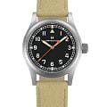 Часы Hamilton Khaki Field Mechanical Limited Edition H89469930 на холщовом ремешке и корпусом из нержавеющей стали диаметром 38 мм с пескоструйной матовой отделкой воспроизводит аутентичный военный дизайн, дополненный сапфировым стекломСапфировое стеклоПрочный и надёжный материал из кристалла сапфира синтетического происхождения, характеризующийся особой твёрдостью и устойчивостью к царапинам и повреждениям. для защиты от царапин и завинчивающейся заводной головкой, обеспечивающей водонепроницаемость до 50 метров. Стрелки с кремово-белым цветом и люминесцентным покрытиемЛюминесцентное покрытиеПозволяет считывать показания времени в темноте. Производители наносят на стрелки, часовые индексы, безель или поверхность циферблата светонакопительный состав, дающий холодное свечение. создают винтажный стиль, а ярко-оранжевая секундная стрелка добавляет контраст. Механизм с ручным заводом H-50 обеспечивает 80-часовой запас хода и оснащён спиралью баланса Nivachron™Nivachron™Специально разработанный инновационный сплав Nivachron™ повышает устойчивость часов к воздействию магнитных полей.. Задняя крышка украшена гравировкой «Limited Edition For Hodinkee» и индивидуальным номером экземпляра, а комплектация включает холщовый ремешок военного стиля со стандартной застёжкой.