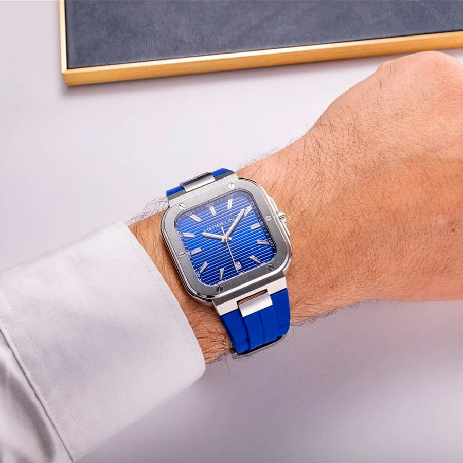 Мужские кварцевые часы Herbelin Cap Camarat 12246A115CB – отражающий идеальное сочетание современного дизайна, надёжности и функциональности. Элегантный облик станет превосходным завершением образа, наделив его индивидуальным характером. Корпус из нержавеющей стали серебристого цвета, размером 39 х 39 мм, идеально сбалансирован и элегантен. Сапфировое стеклоСапфировое стеклоПрочный и надёжный материал из кристалла сапфира синтетического происхождения, характеризующийся особой твёрдостью и устойчивостью к царапинам и повреждениям. защищает циферблат от царапин и устойчивое к механическим повреждениям. БезельБезельВнешний ободок, закрепляющий стекло. В спортивных часах так называется поворотное кольцо с делениями на циферблате, выполняет роль таймера – замеряет отрезки времени на шкале. Неподвижный безель – элемент декора. Однонаправленно вращающийся безель на дайверских часах позволяет фиксировать моменты погружения и выныривания на поверхность. украшен винтами, заводная головка с защитой. Окошко даты находится в положении 6 часов. Стрелки и метки с люминесцентным покрытиемЛюминесцентное покрытиеПозволяет считывать показания времени в темноте. Производители наносят на стрелки, часовые индексы, безель или поверхность циферблата светонакопительный состав, дающий холодное свечение.. Силиконовый ремешок на стандартной застежке обеспечивает комфортное ношение. Водозащита 100 метров позволит плавать, нырять и заниматься другими водными видами спорта. Эта модель – отличный выбор для тех, кто ищет сочетание стиля, качества и функциональности. Часы станут не только полезным аксессуаром, но и выразительным элементом вашего имиджа.