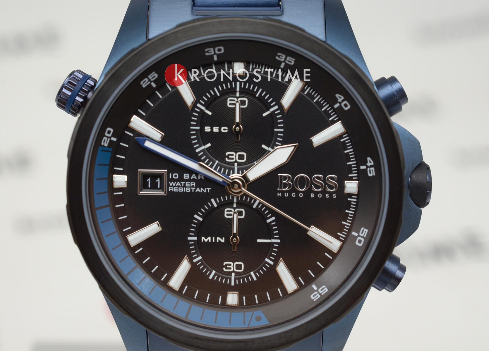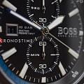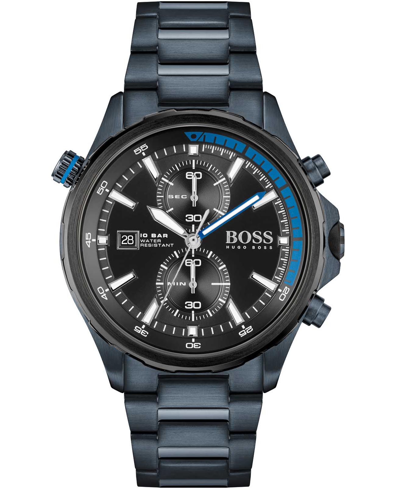 Мужские часы Hugo Boss Globetrotter HB1513824 представлены в круглом 46-мм корпусе из нержавеющей стали с синим IP-покрытиемIP-покрытиеМетод ионного напыления. Демонстрирует повышенную устойчивость к истиранию, окислению и химическим веществам. Под воздействием высокого давления и температуры около 1500°C молекулы металла надёжно соединяются с частицами корпуса часов. толщиной 11–12 мм. Оснащены кварцевым механизмом с функцией хронографаХронографФункция позволяет измерять отрезки времени с особой точностью: часы, минуты, секунды. Верным признаком хронографа является наличие на циферблате 3 дополнительных окошек-счётчиков., секундомеромСекундомерСекундоме́р — прибор, способный измерять интервалы времени с точностью до долей секунды. и тахиметрической шкалой на внутреннем безелеБезельВнешний ободок, закрепляющий стекло. В спортивных часах так называется поворотное кольцо с делениями на циферблате, выполняет роль таймера – замеряет отрезки времени на шкале. Неподвижный безель – элемент декора. Однонаправленно вращающийся безель на дайверских часах позволяет фиксировать моменты погружения и выныривания на поверхность.. Черный циферблат с окошком даты защищен устойчивым к царапинам минеральным стекломМинеральное стеклоМинеральное стекло представляет собой искусственно выращенный минерал кварца. Такое стекло отличается особой устойчивостью к повреждениям и царапинам. Уступает по некоторым качествам сапфировому стеклу.. Стальной браслет с IP-покрытиемIP-покрытиеМетод ионного напыления. Демонстрирует повышенную устойчивость к истиранию, окислению и химическим веществам. Под воздействием высокого давления и температуры около 1500°C молекулы металла надёжно соединяются с частицами корпуса часов. дополнен раскладной застёжкойРаскладная застёжкаТакой тип застёжки используется только на браслетах из металла. Она никогда не раскрывается полностью, происходит разделение на 2 и более частей. Раскладывающая застёжка снизит вероятность потери часов к минимуму.. Стрелки с люминесцентным покрытиемЛюминесцентное покрытиеПозволяет считывать показания времени в темноте. Производители наносят на стрелки, часовые индексы, безель или поверхность циферблата светонакопительный состав, дающий холодное свечение. обеспечивают видимость в темноте. Водонепроницаемость 100 метров (10 ATM) позволяет использовать часы для плавания.