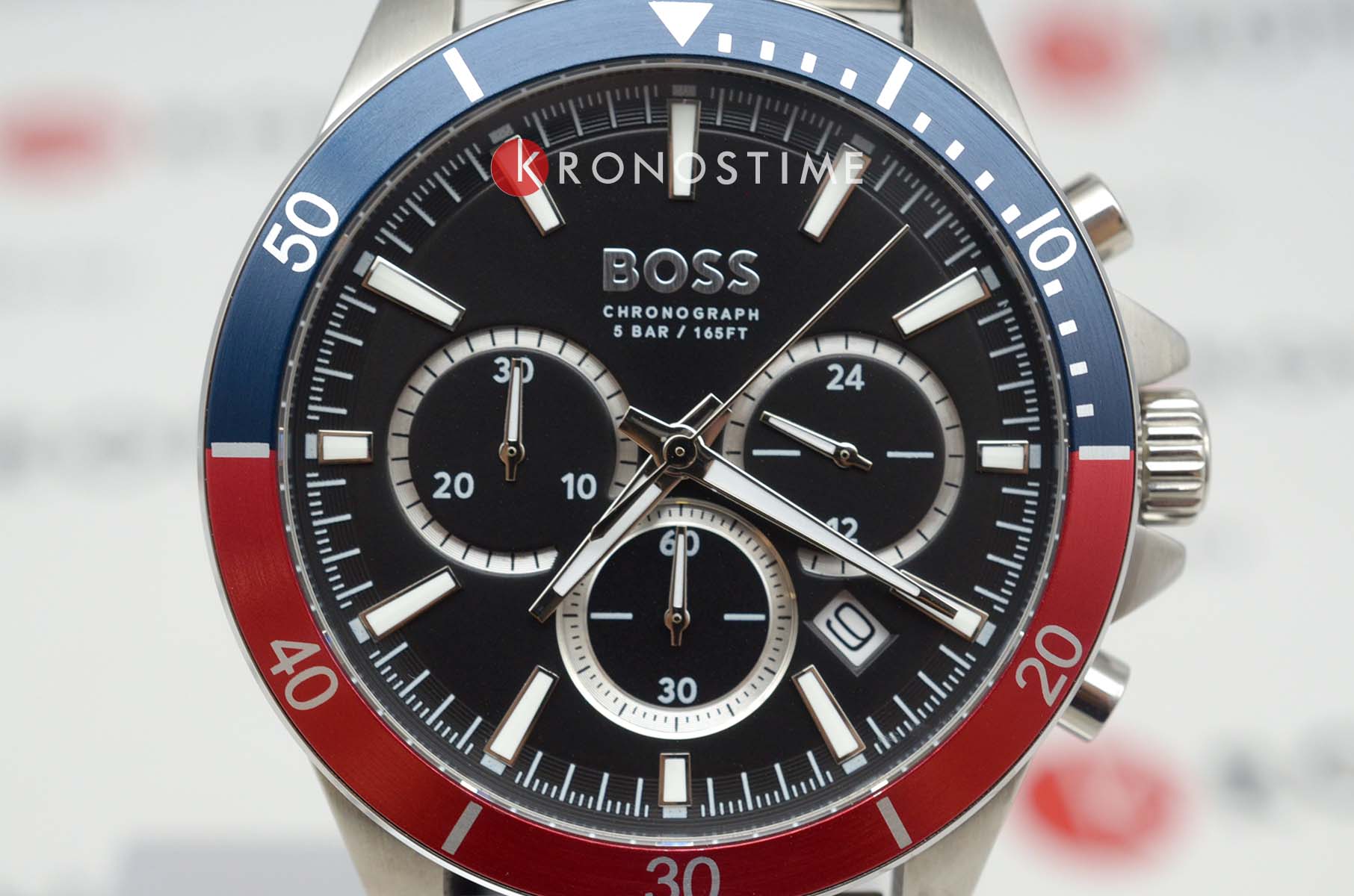 Мужские часы Hugo Boss Troper HB1514108 представлены в круглом 44-мм корпусе из нержавеющей стали с IP-покрытиемIP-покрытиеМетод ионного напыления. Демонстрирует повышенную устойчивость к истиранию, окислению и химическим веществам. Под воздействием высокого давления и температуры около 1500°C молекулы металла надёжно соединяются с частицами корпуса часов.. Оснащены кварцевым механизмом с функциями хронографаХронографФункция позволяет измерять отрезки времени с особой точностью: часы, минуты, секунды. Верным признаком хронографа является наличие на циферблате 3 дополнительных окошек-счётчиков. и секундомеромСекундомерСекундоме́р — прибор, способный измерять интервалы времени с точностью до долей секунды.. Черный циферблат защищен устойчивым к царапинам минеральным стекломМинеральное стеклоМинеральное стекло представляет собой искусственно выращенный минерал кварца. Такое стекло отличается особой устойчивостью к повреждениям и царапинам. Уступает по некоторым качествам сапфировому стеклу., а стрелки покрыты люминесцентным составомЛюминесцентное покрытиеПозволяет считывать показания времени в темноте. Производители наносят на стрелки, часовые индексы, безель или поверхность циферблата светонакопительный состав, дающий холодное свечение. для видимости в темноте. Браслет из нержавеющей стали дополнен раскладной застёжкойРаскладная застёжкаТакой тип застёжки используется только на браслетах из металла. Она никогда не раскрывается полностью, происходит разделение на 2 и более частей. Раскладывающая застёжка снизит вероятность потери часов к минимуму.. Водонепроницаемость 50 метров (5 ATM) позволяет использовать часы для плавания.