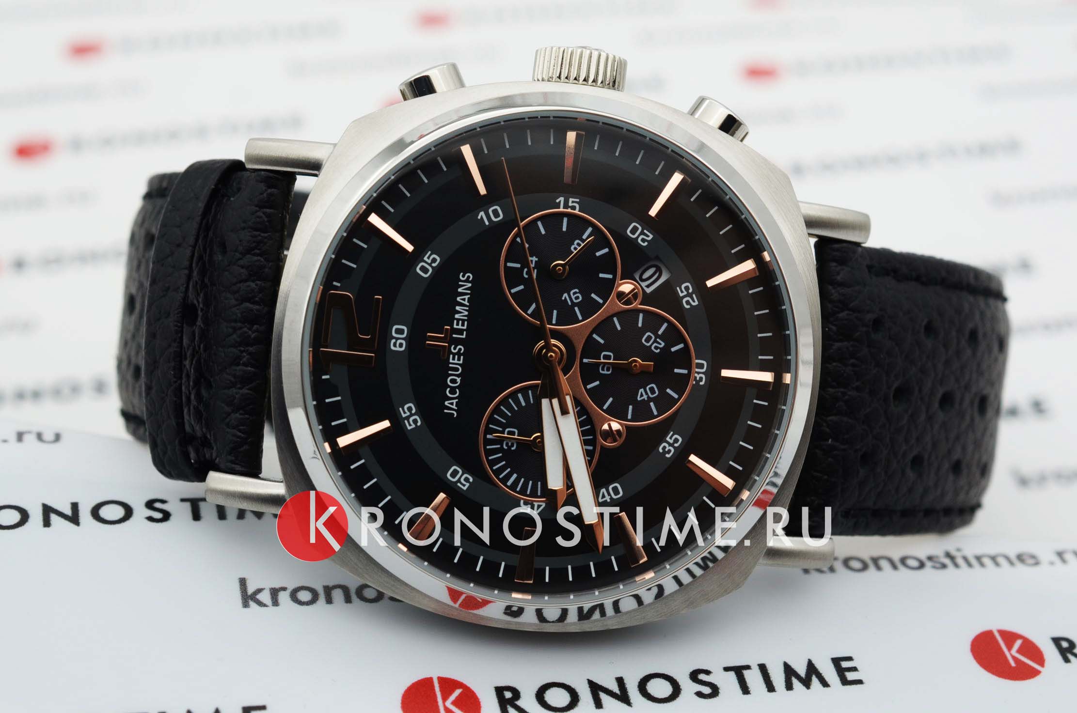 Наручные часы-хронографХронографФункция позволяет измерять отрезки времени с особой точностью: часы, минуты, секунды. Верным признаком хронографа является наличие на циферблате 3 дополнительных окошек-счётчиков. Jacques Lemans с функциями секундомераСекундомерСекундоме́р — прибор, способный измерять интервалы времени с точностью до долей секунды., 24-х часовым индикатором и датой призваны ставить на первое место индивидуальный стиль владельца, классическая элегантность придётся по вкусу каждому.