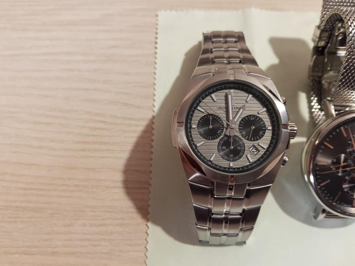 Австрийские часы- хронографХронографФункция позволяет измерять отрезки времени с особой точностью: часы, минуты, секунды. Верным признаком хронографа является наличие на циферблате 3 дополнительных окошек-счётчиков. Jacques Lemans Melbourne 1-2181F, кварцевый механизм с высокой точностью. Минеральное стеклоМинеральное стеклоМинеральное стекло представляет собой искусственно выращенный минерал кварца. Такое стекло отличается особой устойчивостью к повреждениям и царапинам. Уступает по некоторым качествам сапфировому стеклу. устойчивое к появлению царапин, обладающее высокой прозрачностью. Корпус часов изготовлен из нержавеющей стали. Стрелки с люминесцентным покрытиемЛюминесцентное покрытиеПозволяет считывать показания времени в темноте. Производители наносят на стрелки, часовые индексы, безель или поверхность циферблата светонакопительный состав, дающий холодное свечение.. Класс водозащиты: 100 метров, позволит плавать, нырять и заниматься другими водными видами спорта. Стальной браслет на раскладной застёжкеРаскладная застёжкаТакой тип застёжки используется только на браслетах из металла. Она никогда не раскрывается полностью, происходит разделение на 2 и более частей. Раскладывающая застёжка снизит вероятность потери часов к минимуму..
