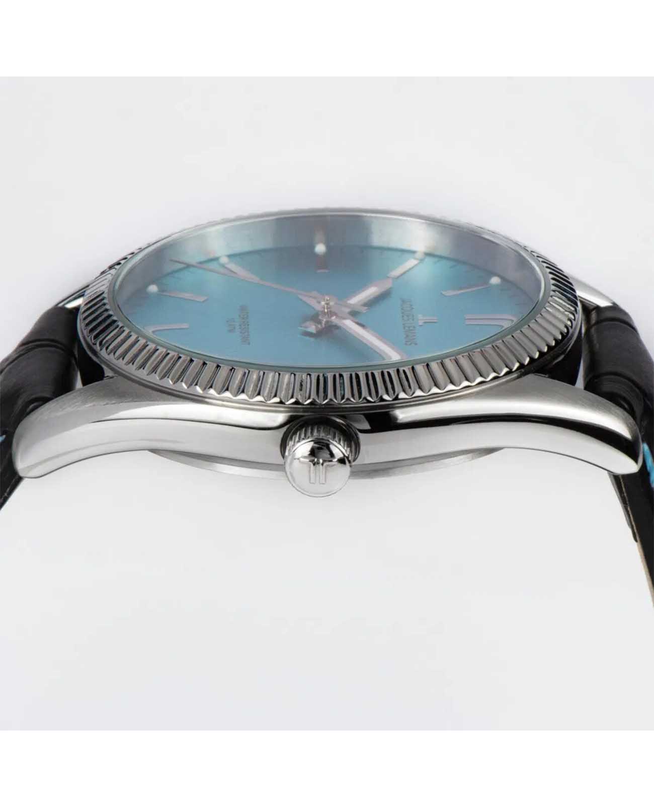 Мужские часы Jacques Lemans Derby 50-3S с минеральным стекломМинеральное стеклоМинеральное стекло представляет собой искусственно выращенный минерал кварца. Такое стекло отличается особой устойчивостью к повреждениям и царапинам. Уступает по некоторым качествам сапфировому стеклу., кварцевый механизм с высокой точностью. Корпус часов из нержавеющей стали. Стрелки с люминесцентным покрытиемЛюминесцентное покрытиеПозволяет считывать показания времени в темноте. Производители наносят на стрелки, часовые индексы, безель или поверхность циферблата светонакопительный состав, дающий холодное свечение.. Окошко даты в положении 3 часа. Класс водозащиты: 50 метров, позволит защитить корпус от случайных брызг или капель дождя. Кожаный ремешок на стандартной застежке.