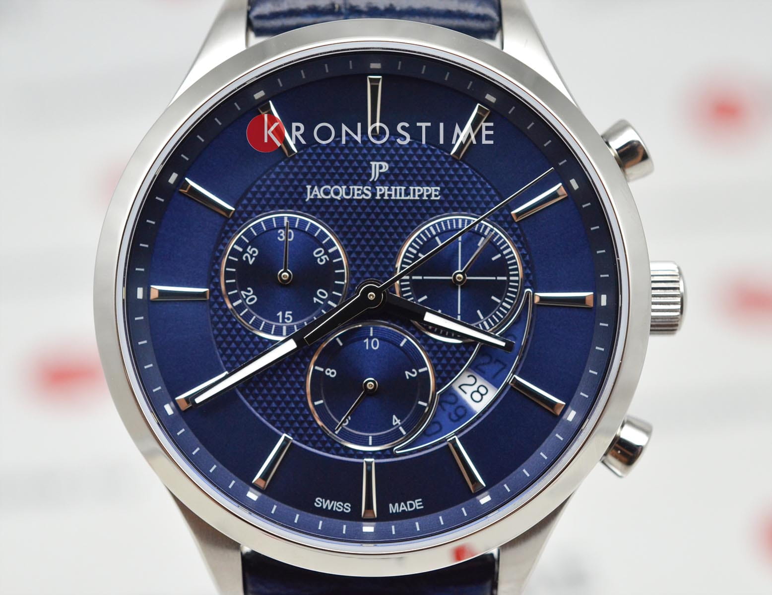 Часы Jacques Philippe JPQGC031132 сочетают в себе элегантный дизайн и высокое качество швейцарского часового мастерства. Корпус диаметром 43 мм выполнен из нержавеющей стали, а синий циферблат защищён сапфировым стекломСапфировое стеклоПрочный и надёжный материал из кристалла сапфира синтетического происхождения, характеризующийся особой твёрдостью и устойчивостью к царапинам и повреждениям..