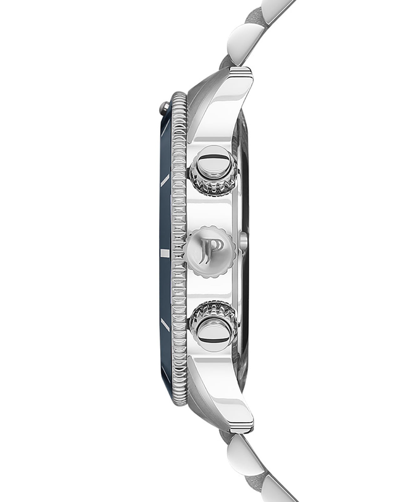 Швейцарские мужские часы-хронографХронографФункция позволяет измерять отрезки времени с особой точностью: часы, минуты, секунды. Верным признаком хронографа является наличие на циферблате 3 дополнительных окошек-счётчиков. с секундомеромСекундомерСекундоме́р — прибор, способный измерять интервалы времени с точностью до долей секунды. Jacques Philippe Victory JPQGC271336, кварцевый механизм с высокой точностью. Сапфировое стеклоСапфировое стеклоПрочный и надёжный материал из кристалла сапфира синтетического происхождения, характеризующийся особой твёрдостью и устойчивостью к царапинам и повреждениям. устойчивое к появлению царапин, обладающее высокой прозрачностью. Корпус часов изготовлен из нержавеющей стали. БезельБезельВнешний ободок, закрепляющий стекло. В спортивных часах так называется поворотное кольцо с делениями на циферблате, выполняет роль таймера – замеряет отрезки времени на шкале. Неподвижный безель – элемент декора. Однонаправленно вращающийся безель на дайверских часах позволяет фиксировать моменты погружения и выныривания на поверхность. из стали с IP-покрытиемIP-покрытиеМетод ионного напыления. Демонстрирует повышенную устойчивость к истиранию, окислению и химическим веществам. Под воздействием высокого давления и температуры около 1500°C молекулы металла надёжно соединяются с частицами корпуса часов.. На циферблате три дополнительных индикатора. Окошко даты находится в положении 6 часов. Стрелки с люминесцентным покрытиемЛюминесцентное покрытиеПозволяет считывать показания времени в темноте. Производители наносят на стрелки, часовые индексы, безель или поверхность циферблата светонакопительный состав, дающий холодное свечение.. Класс водозащиты: 100 метров, позволит плавать, нырять и заниматься другими водными видами спорта. Стальной браслет на застёжке «бабочка» с кнопкамиЗастёжка "бабочка"Такой вид застёжки дополняется предохранителями, помогающими избежать случайного раскрытия браслета. Обладают изящным исполнением. .