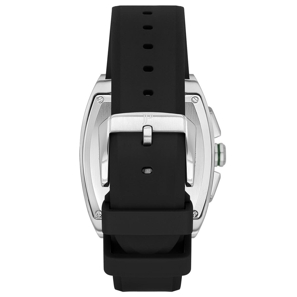 Швейцарские мужские часы-хронографХронографФункция позволяет измерять отрезки времени с особой точностью: часы, минуты, секунды. Верным признаком хронографа является наличие на циферблате 3 дополнительных окошек-счётчиков. с секундомеромСекундомерСекундоме́р — прибор, способный измерять интервалы времени с точностью до долей секунды. Jacques Philippe Quadro JPQGC461411, кварцевый механизм с высокой точностью. Сапфировое стеклоСапфировое стеклоПрочный и надёжный материал из кристалла сапфира синтетического происхождения, характеризующийся особой твёрдостью и устойчивостью к царапинам и повреждениям. устойчивое к появлению царапин, обладающее высокой прозрачностью. Корпус часов изготовлен из нержавеющей стали. На циферблате три дополнительных индикатора. Окошко даты находится в положении 6 часов. Стрелки с люминесцентным покрытиемЛюминесцентное покрытиеПозволяет считывать показания времени в темноте. Производители наносят на стрелки, часовые индексы, безель или поверхность циферблата светонакопительный состав, дающий холодное свечение.. Класс водозащиты: 50 метров, позволит защитить корпус от случайных брызг или капель дождя. Стальной браслет на застёжке «бабочка» с кнопкамиЗастёжка "бабочка"Такой вид застёжки дополняется предохранителями, помогающими избежать случайного раскрытия браслета. Обладают изящным исполнением. .