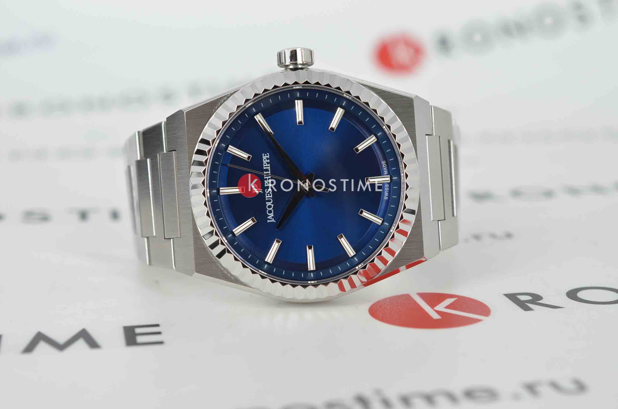 Часы Jacques Philippe Borealis JPQGC571336 — это воплощение швейцарских традиций часового мастерства в сочетании с современным дизайном. Модель оснащена надежным кварцевым механизмом RONDA 513 AIG2, который гарантирует точность и долговечность работы. Корпус и браслет выполнены из высококачественной нержавеющей стали 316L, что обеспечивает износостойкость и презентабельный внешний вид на протяжении долгого времени. Рифленый безельБезельВнешний ободок, закрепляющий стекло. В спортивных часах так называется поворотное кольцо с делениями на циферблате, выполняет роль таймера – замеряет отрезки времени на шкале. Неподвижный безель – элемент декора. Однонаправленно вращающийся безель на дайверских часах позволяет фиксировать моменты погружения и выныривания на поверхность. добавляет уникальности. Сапфировое стеклоСапфировое стеклоПрочный и надёжный материал из кристалла сапфира синтетического происхождения, характеризующийся особой твёрдостью и устойчивостью к царапинам и повреждениям. надежно защищает циферблат от царапин и сохраняет прозрачность даже при активной эксплуатации. Синий циферблат стильно контрастирует с серебристым корпусом, подчеркивая элегантность аксессуара. Часы комплектуются браслетом из нержавеющей стали 316L и застежкой «бабочка»Застёжка "бабочка"Такой вид застёжки дополняется предохранителями, помогающими избежать случайного раскрытия браслета. Обладают изящным исполнением. , раскладывающаяся при нажатии кнопок двойной блокировки. Часы оснащены функцией отображения даты, а завинчивающаяся заводная головка и водозащита до 5 АТМ делают эту модель отличным выбором для повседневного ношения и активного образа жизни.