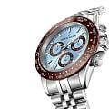 Швейцарские наручные часы Jacques Philippe JPQGC7113X6SBBR сочетают в себе современный дизайн, надежность и функциональность, это стильные швейцарские часы с функцией хронографаХронографФункция позволяет измерять отрезки времени с особой точностью: часы, минуты, секунды. Верным признаком хронографа является наличие на циферблате 3 дополнительных окошек-счётчиков. и секундомераСекундомерСекундоме́р — прибор, способный измерять интервалы времени с точностью до долей секунды.. Корпус круглой формы диаметром 39 мм выполнен из прочной нержавеющей стали, а безельБезельВнешний ободок, закрепляющий стекло. В спортивных часах так называется поворотное кольцо с делениями на циферблате, выполняет роль таймера – замеряет отрезки времени на шкале. Неподвижный безель – элемент декора. Однонаправленно вращающийся безель на дайверских часах позволяет фиксировать моменты погружения и выныривания на поверхность. с элегантным коричневым IP-покрытиемIP-покрытиеМетод ионного напыления. Демонстрирует повышенную устойчивость к истиранию, окислению и химическим веществам. Под воздействием высокого давления и температуры около 1500°C молекулы металла надёжно соединяются с частицами корпуса часов., а сапфировое стеклоСапфировое стеклоПрочный и надёжный материал из кристалла сапфира синтетического происхождения, характеризующийся особой твёрдостью и устойчивостью к царапинам и повреждениям. надежно защищает голубой циферблат от царапин и повреждений. Модель оснащена точным кварцевым механизмом RONDA 5030.D-4H, а также дополнительными функциями — тахиметромТахиметрРазмеченная шкала, располагается на ободке или безеле часов. Тахиметр позволяет рассчитать скорость на определённом участке пути, расстояние измеряется в километрах или милях. и индикатором даты, что делает часы не только стильным аксессуаром, но и практичным помощником на каждый день. Серебристый браслет шириной 20 мм удобно фиксируется на запястье с помощью застежки «бабочка»Застёжка "бабочка"Такой вид застёжки дополняется предохранителями, помогающими избежать случайного раскрытия браслета. Обладают изящным исполнением. . Стрелки имеют люминесцентное покрытиеЛюминесцентное покрытиеПозволяет считывать показания времени в темноте. Производители наносят на стрелки, часовые индексы, безель или поверхность циферблата светонакопительный состав, дающий холодное свечение. для удобства чтения времени в темноте. Водозащита 5 АТМ позволяет не снимать часы при дожде и случайных контактах с водой.