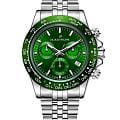 Швейцарские наручные часы Jacques Philippe JPQGC7113X6SBG сочетают в себе современный дизайн, надежность и функциональность, это стильные швейцарские часы с функцией хронографаХронографФункция позволяет измерять отрезки времени с особой точностью: часы, минуты, секунды. Верным признаком хронографа является наличие на циферблате 3 дополнительных окошек-счётчиков. и секундомераСекундомерСекундоме́р — прибор, способный измерять интервалы времени с точностью до долей секунды.. Корпус круглой формы диаметром 39 мм выполнен из прочной нержавеющей стали, а безельБезельВнешний ободок, закрепляющий стекло. В спортивных часах так называется поворотное кольцо с делениями на циферблате, выполняет роль таймера – замеряет отрезки времени на шкале. Неподвижный безель – элемент декора. Однонаправленно вращающийся безель на дайверских часах позволяет фиксировать моменты погружения и выныривания на поверхность. с элегантным зеленым IP-покрытиемIP-покрытиеМетод ионного напыления. Демонстрирует повышенную устойчивость к истиранию, окислению и химическим веществам. Под воздействием высокого давления и температуры около 1500°C молекулы металла надёжно соединяются с частицами корпуса часов., а сапфировое стеклоСапфировое стеклоПрочный и надёжный материал из кристалла сапфира синтетического происхождения, характеризующийся особой твёрдостью и устойчивостью к царапинам и повреждениям. надежно защищает зеленый циферблат от царапин и повреждений. Модель оснащена точным кварцевым механизмом RONDA 5030.D-4H, а также дополнительными функциями — тахиметромТахиметрРазмеченная шкала, располагается на ободке или безеле часов. Тахиметр позволяет рассчитать скорость на определённом участке пути, расстояние измеряется в километрах или милях. и индикатором даты, что делает часы не только стильным аксессуаром, но и практичным помощником на каждый день. Серебристый браслет шириной 20 мм удобно фиксируется на запястье с помощью застежки «бабочка»Застёжка "бабочка"Такой вид застёжки дополняется предохранителями, помогающими избежать случайного раскрытия браслета. Обладают изящным исполнением. . Стрелки имеют люминесцентное покрытиеЛюминесцентное покрытиеПозволяет считывать показания времени в темноте. Производители наносят на стрелки, часовые индексы, безель или поверхность циферблата светонакопительный состав, дающий холодное свечение. для удобства чтения времени в темноте. Водозащита 5 АТМ позволяет не снимать часы при дожде и случайных контактах с водой.