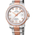 Женские швейцарские часы Jaguar Woman J894/1. Кварцевый швейцарский калибр Ronda 705. Сапфировое стеклоСапфировое стеклоПрочный и надёжный материал из кристалла сапфира синтетического происхождения, характеризующийся особой твёрдостью и устойчивостью к царапинам и повреждениям. устойчивое к мелким механическим повреждениям. Корпус и браслет часов изготовлены из нержавеющей стали, с безелем, инкрустированным цирконием. Стрелки с люминесцентным покрытиемЛюминесцентное покрытиеПозволяет считывать показания времени в темноте. Производители наносят на стрелки, часовые индексы, безель или поверхность циферблата светонакопительный состав, дающий холодное свечение.. Окошко даты находится в положении 3 часа. Класс водозащиты: 200 метров, позволит плавать, нырять и заниматься другими водными видами спорта. Стальной браслет с частичным PVD-покрытиемPVDУльтратонкое покрытие наносится в технике вакуумного напыления, сочетает в себе нитрид титана особой прочности со слоем золота или оксида хрома. Несёт в себе декоративную или защитную функцию. на раскладной застёжкеРаскладная застёжкаТакой тип застёжки используется только на браслетах из металла. Она никогда не раскрывается полностью, происходит разделение на 2 и более частей. Раскладывающая застёжка снизит вероятность потери часов к минимуму.. Циферблат украшен кристаллами в роли часовых индексов. БезельБезельВнешний ободок, закрепляющий стекло. В спортивных часах так называется поворотное кольцо с делениями на циферблате, выполняет роль таймера – замеряет отрезки времени на шкале. Неподвижный безель – элемент декора. Однонаправленно вращающийся безель на дайверских часах позволяет фиксировать моменты погружения и выныривания на поверхность. с PVD-покрытиемPVDУльтратонкое покрытие наносится в технике вакуумного напыления, сочетает в себе нитрид титана особой прочности со слоем золота или оксида хрома. Несёт в себе декоративную или защитную функцию. инкрустирован кристаллами.