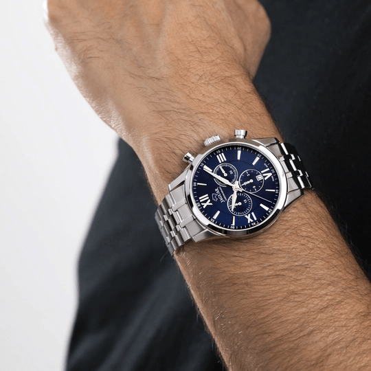 Мужские швейцарские часы-хронографХронографФункция позволяет измерять отрезки времени с особой точностью: часы, минуты, секунды. Верным признаком хронографа является наличие на циферблате 3 дополнительных окошек-счётчиков. Jaguar Acamar J963/2. Кварцевый швейцарский калибр Ronda 5030D. Сапфировое стеклоСапфировое стеклоПрочный и надёжный материал из кристалла сапфира синтетического происхождения, характеризующийся особой твёрдостью и устойчивостью к царапинам и повреждениям. устойчивое к мелким механическим повреждениям. Корпус и браслет часов изготовлены из нержавеющей стали. Окошко даты находится в положении 6 часов. Класс водозащиты: 100 метров, позволит плавать, нырять и заниматься другими водными видами спорта. Стальной браслет на раскладной застёжкеРаскладная застёжкаТакой тип застёжки используется только на браслетах из металла. Она никогда не раскрывается полностью, происходит разделение на 2 и более частей. Раскладывающая застёжка снизит вероятность потери часов к минимуму..