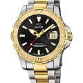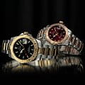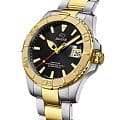 Унисекс швейцарские часы Jaguar Couple Diver J970/3. Кварцевый швейцарский калибр Ronda 6003.d. Сапфировое стеклоСапфировое стеклоПрочный и надёжный материал из кристалла сапфира синтетического происхождения, характеризующийся особой твёрдостью и устойчивостью к царапинам и повреждениям. устойчивое к мелким механическим повреждениям. Корпус часов изготовлен из нержавеющей стали. Стрелки и метки с люминесцентным покрытиемЛюминесцентное покрытиеПозволяет считывать показания времени в темноте. Производители наносят на стрелки, часовые индексы, безель или поверхность циферблата светонакопительный состав, дающий холодное свечение.. Окошко даты находится в положении 3 часа. Класс водозащиты: 200 метров, позволит плавать, нырять и заниматься другими водными видами спорта. Стальной браслет с частичным  PVD-покрытиемPVDУльтратонкое покрытие наносится в технике вакуумного напыления, сочетает в себе нитрид титана особой прочности со слоем золота или оксида хрома. Несёт в себе декоративную или защитную функцию. на раскладной застёжкеРаскладная застёжкаТакой тип застёжки используется только на браслетах из металла. Она никогда не раскрывается полностью, происходит разделение на 2 и более частей. Раскладывающая застёжка снизит вероятность потери часов к минимуму.. БезельБезельВнешний ободок, закрепляющий стекло. В спортивных часах так называется поворотное кольцо с делениями на циферблате, выполняет роль таймера – замеряет отрезки времени на шкале. Неподвижный безель – элемент декора. Однонаправленно вращающийся безель на дайверских часах позволяет фиксировать моменты погружения и выныривания на поверхность. с PVD-покрытиемPVDУльтратонкое покрытие наносится в технике вакуумного напыления, сочетает в себе нитрид титана особой прочности со слоем золота или оксида хрома. Несёт в себе декоративную или защитную функцию..