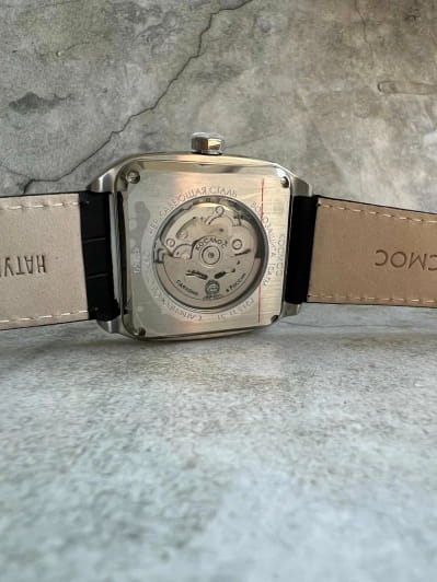 Мужские наручные часы Космос Марсоход K 213.11.35 — это уникальная лимитированная серия, созданная в честь одного из самых амбициозных проектов в истории космических исследований. Модель объединяет дух советского инженерного наследия с современными технологиями, создавая аксессуар, сочетающий прочность, функциональность и ретро-стиль. Часы оснащены механическим механизмом с автоподзаводом от Seiko TMI, известным своей надёжностью и точностью. Корпус выполнен из нержавеющей стали 316L в форме квадрата с закруглёнными углами и дополнен сочетанием зеркальной полировки и сатинированной отделки, что придаёт модели солидность и оригинальность. Циферблат чёрного цвета имеет двухуровневую структуру. Центральный уровень содержит три стрелки, часовая и минутная из которых оснащены люминесцентным покрытиемЛюминесцентное покрытиеПозволяет считывать показания времени в темноте. Производители наносят на стрелки, часовые индексы, безель или поверхность циферблата светонакопительный состав, дающий холодное свечение. для отличной читаемости даже в условиях слабого освещения. Индикация дня недели и даты представлена сразу на двух языках — русском и английском, что делает модель удобной для международного использования. Защиту циферблата обеспечивает сапфировое стеклоСапфировое стеклоПрочный и надёжный материал из кристалла сапфира синтетического происхождения, характеризующийся особой твёрдостью и устойчивостью к царапинам и повреждениям. с антибликовым покрытиемАнтибликовое покрытиеСлой оксида металла в 0,13-0,3 микрон, благодаря которому стекло часов не бликует и не отражает свет. Антибликовое покрытие уменьшает отражение света в 10 раз, обеспечивая отличную читаемость показателей циферблата., устойчивое к царапинам и повреждениям, гарантирующее чёткость восприятия информации при любом освещении. Заводная головка выполнена в форме гайки, что придаёт модели индустриальный шарм и подчёркивает её техническую направленность. Задняя крышка — прозрачная и закреплена на четырёх винтах, а также содержит индивидуальный номер модели, что подчёркивает её эксклюзивность. Первый выпуск ограничен 50 экземплярами с номерами от 01/50 до 50/50, второй выпуск — 150 штуками с номерами от 051/200 до 200/200. Ремешок изготовлен из натуральной кожи чёрного цвета и оснащён застёжкой с фирменным логотипом. Ширина ремешка составляет 26 мм, что обеспечивает плотное и комфортное прилегание на запястье. Часы обладают водонепроницаемостью , что позволяет использовать их при плавании и других водных активностях. Эти часы станут универсальным аксессуаром для тех, кто ценит сочетание истории, технологичности и стиля — идеальный выбор для уверенных в себе мужчин, следящих за своим имиджем и предпочитающих выделяться.