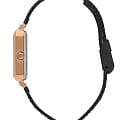 Циферблат черного цвета украшен индексами и стрелками с IP-покрытием розового золота, гармонично дополняя классический дизайн модели. Форма корпуса прямоугольная с размерами 20,5 x 26 мм, что делает часы компактными и удобными для повседневной носки.