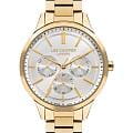 Женские часы Lee Cooper LC07865.130 — это стильное сочетание элегантности и современного дизайна. Круглый корпус диаметром 38 мм выполнен из суперметалла с IP-покрытиемIP-покрытиеМетод ионного напыления. Демонстрирует повышенную устойчивость к истиранию, окислению и химическим веществам. Под воздействием высокого давления и температуры около 1500°C молекулы металла надёжно соединяются с частицами корпуса часов. золотого цвета, придающий модели особый блеск. Серебристый циферблат защищен минеральным стекломМинеральное стеклоМинеральное стекло представляет собой искусственно выращенный минерал кварца. Такое стекло отличается особой устойчивостью к повреждениям и царапинам. Уступает по некоторым качествам сапфировому стеклу., обеспечивающим устойчивость к царапинам. Часы оснащены надежным кварцевым механизмом, а стальной браслет с IP-покрытиемIP-покрытиеМетод ионного напыления. Демонстрирует повышенную устойчивость к истиранию, окислению и химическим веществам. Под воздействием высокого давления и температуры около 1500°C молекулы металла надёжно соединяются с частицами корпуса часов. на раскладной застёжкеРаскладная застёжкаТакой тип застёжки используется только на браслетах из металла. Она никогда не раскрывается полностью, происходит разделение на 2 и более частей. Раскладывающая застёжка снизит вероятность потери часов к минимуму. гарантирует комфортную посадку на запястье. Мультифункциональная модель с индикацией даты, дня недели, с дополнительным 24-х часовым индикатором. Водозащита 30 метров защищает модель от случайных брызг и дождя. Lee Cooper  — отличный выбор для тех, кто ценит утонченность и качество.